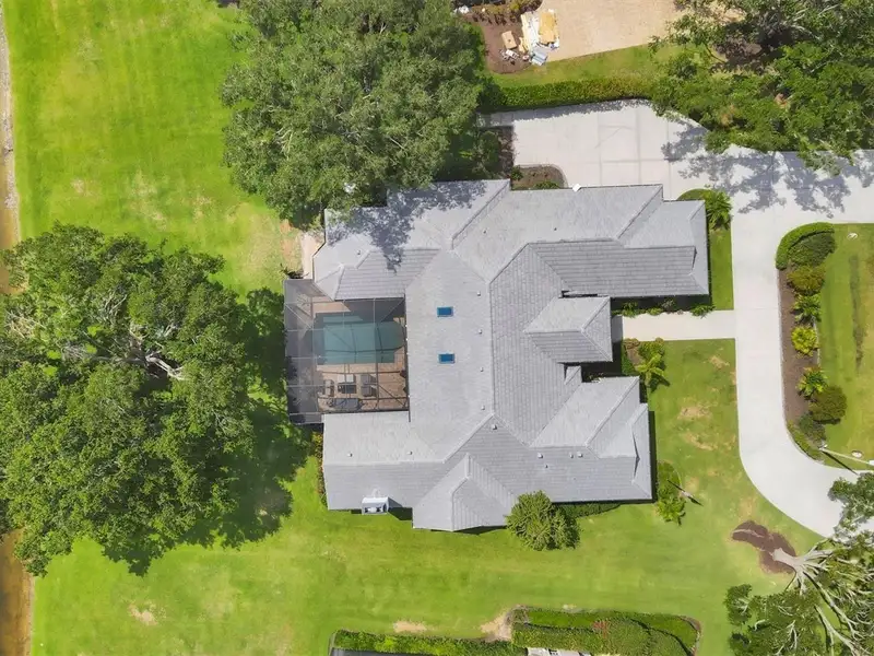 - Half-acre lot with mature oaks and palms