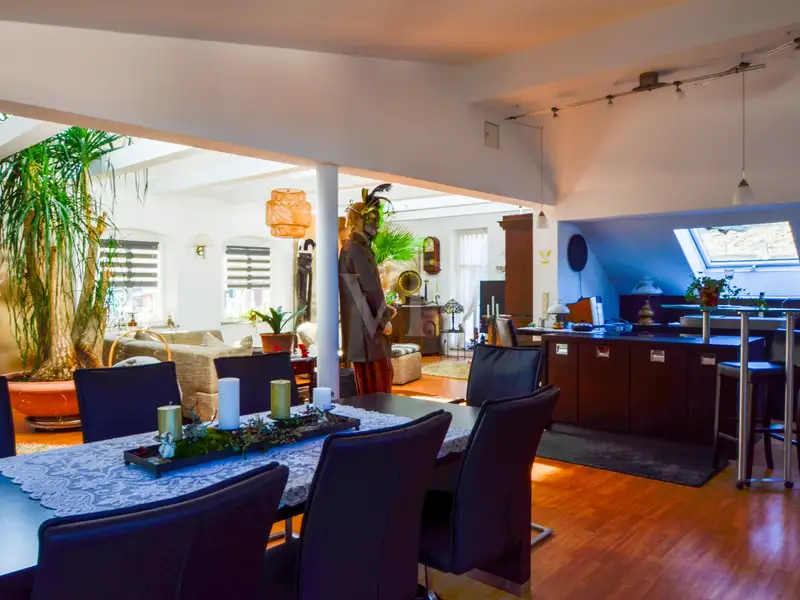 Apartment 3: With an impressive 215 m² of living space, this apartment is a real highlight. It has a spacious balcony and a fully developed attic, which was extensively renovated in 2015. Here you will find the perfect space for discerning tastes.