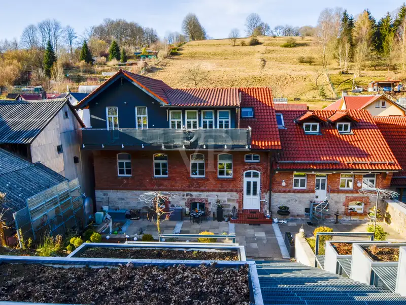 This unique multi-family house property from 1910, in solid solid construction, is located in the idyllic location of Altendambach, a district of Schleusingen. On a generous plot of 1,716 m², the property offers a total of 390 m² of living space, divided into three individually designed residential units. The attractive location of the property is complemented by a separate garden area of 1,845 m², which also serves as an access area to the property.