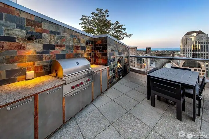 - Gas fireplace on rooftop deck