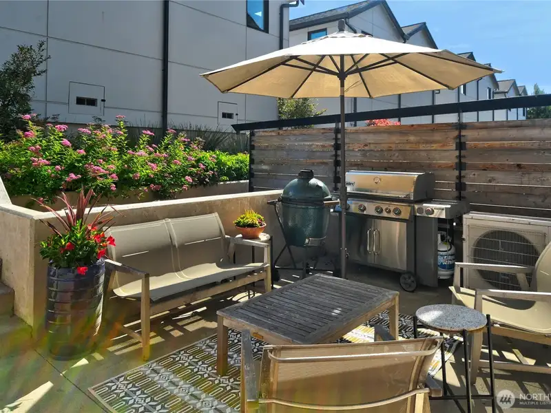 - Private patio and upper deck