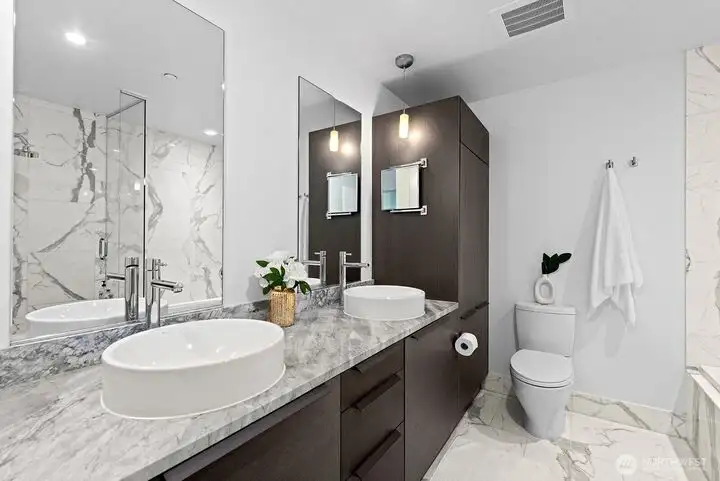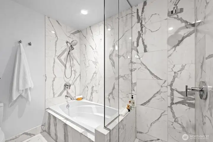 - Spa-inspired primary marble bath
