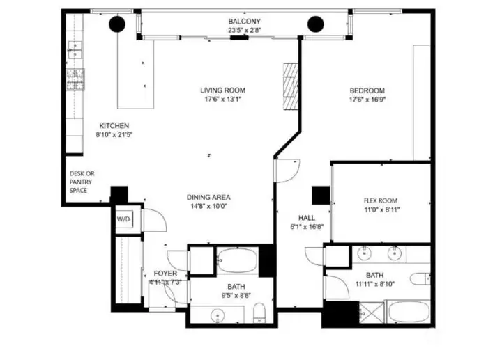- Chef’s kitchen with open floor plan