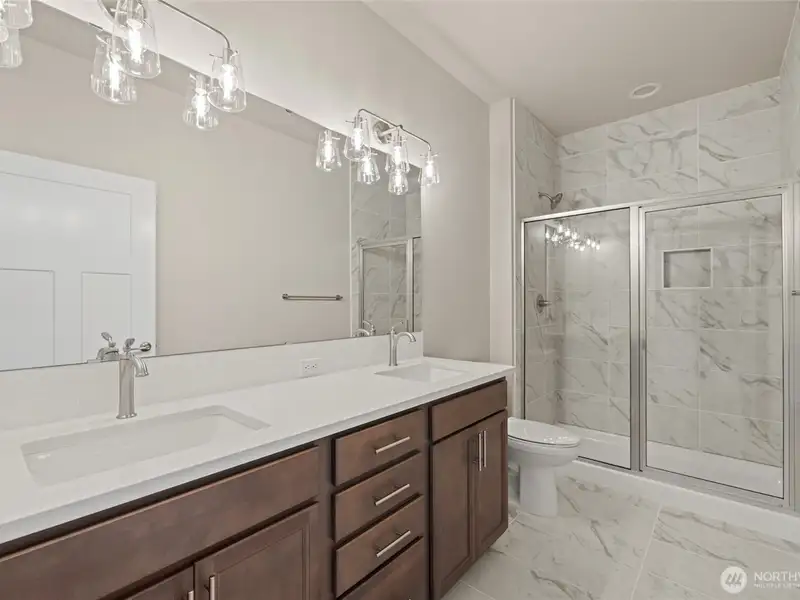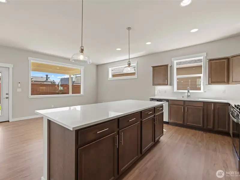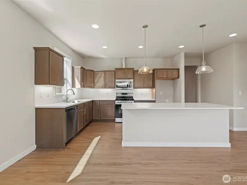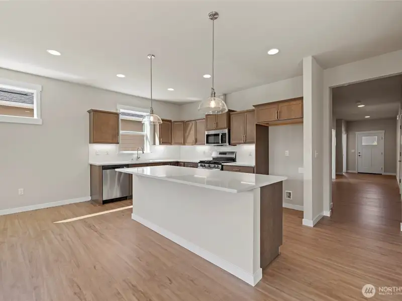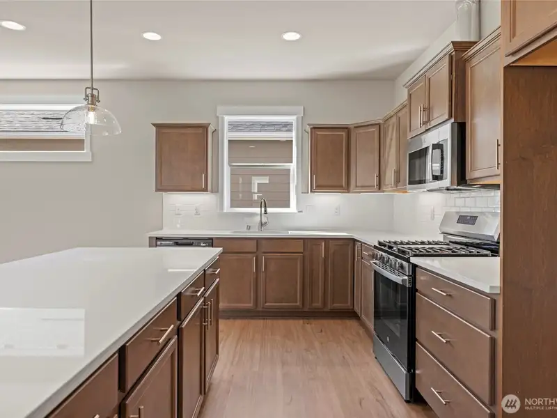 - Kitchen with upgraded cabinets and quartz counters