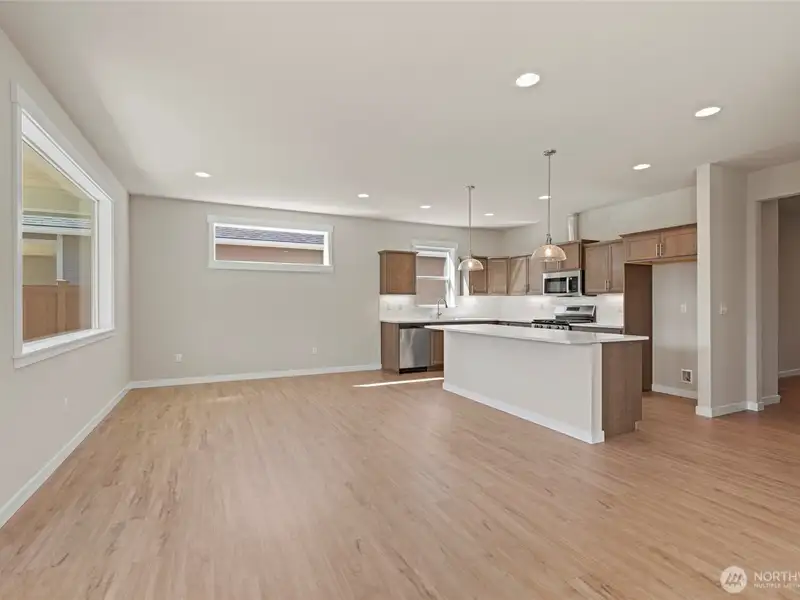 - Open great room with gas fireplace