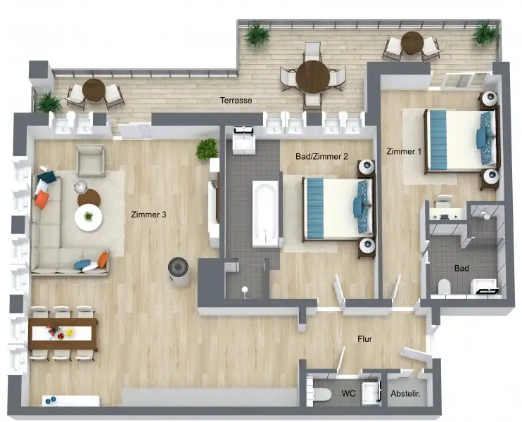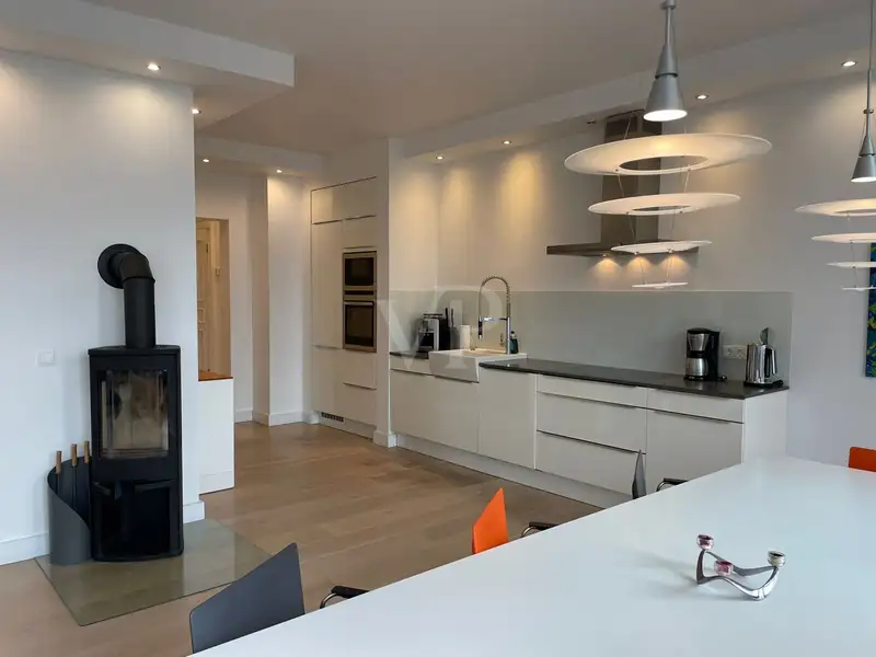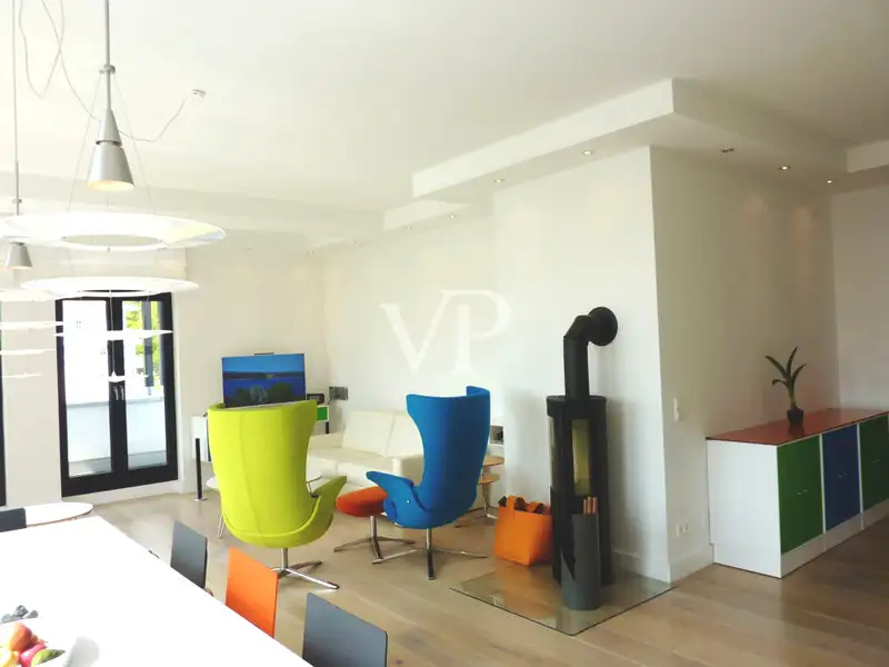 From the bathroom fittings to the fitted kitchen and the custom-made doors, only high-quality materials (such as natural stone, oak wood and manufactured tiles) were used. The excellent quality speaks for the German manufacturers. Underfloor heating provides a comfortable indoor climate.