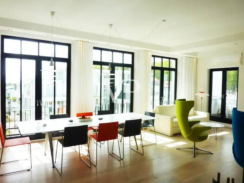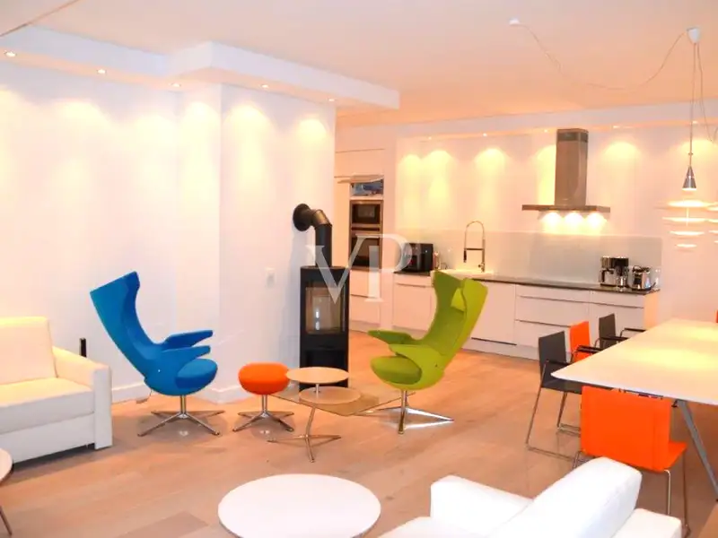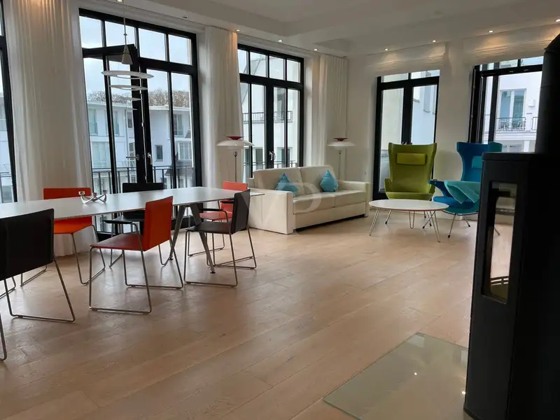 The light-flooded, exclusive apartment faces southwest and is equipped with extravagant, luxurious designer furniture and lamps. A fireplace invites to cozy leisure hours. Each room has been equipped with 3D flat screen TVs. An entertainment station with game console, DVD/CD player, radio etc. completes the technical ensemble.