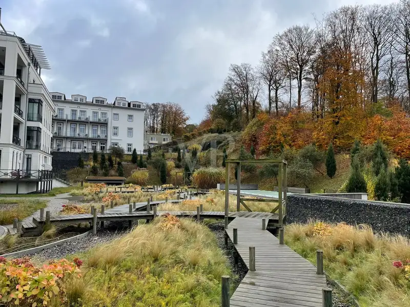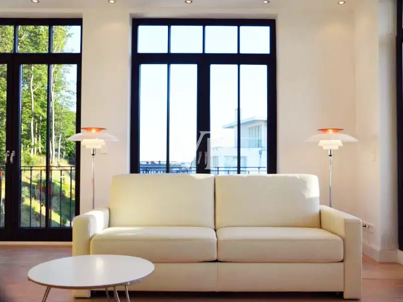 Living on Rügen means living by the sea: The beach villa "Philine" with a luxury apartment and a balcony of about 18 m² in the middle of a dune landscape is located in the Baltic resort Sellin. The villa is only a few steps away from the main beach of Sellin and the pier.