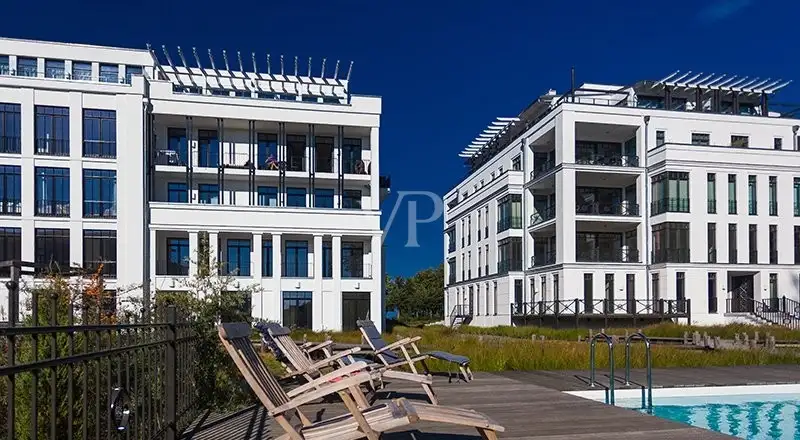 With this exclusive apartment you also acquire VIP access to the sky swimming pool and 2 saunas on the top floor of the neighboring building, also with breathtaking views of the Baltic Sea.