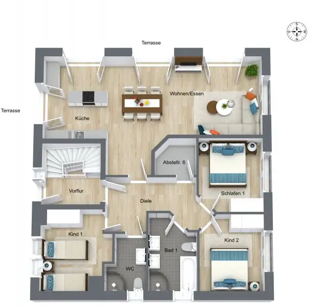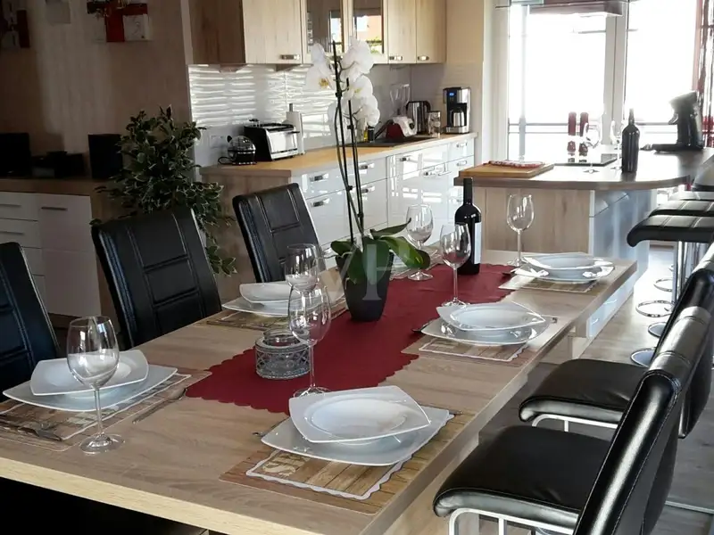 This as-new vacation home "Villa Gina" with its 233 m² of living space plus approx. 349 m² of usable space on a plot of 463 m² offers enough space for a relaxing vacation. The house, built in 2017, is situated in a quiet location with south and west orientation and is only about 500 meters from the fine, gently sloping kilometer-long south beach. The property impresses with its high-quality furnishings and its division into 3 residential units. One of these is the granny basement apartment.