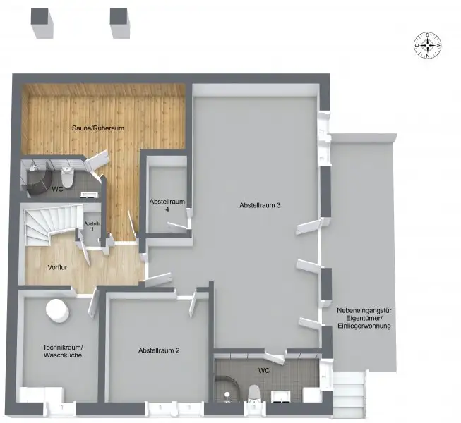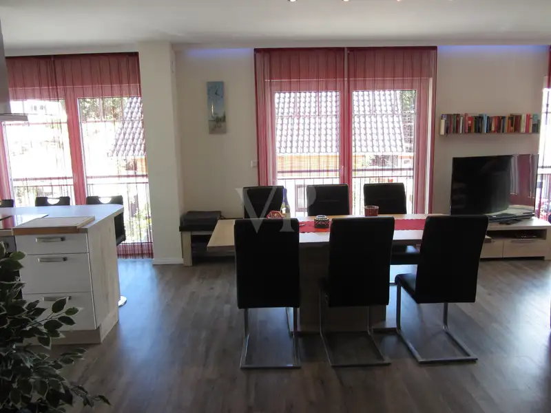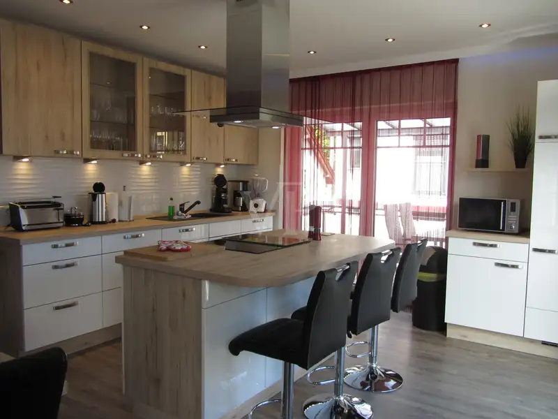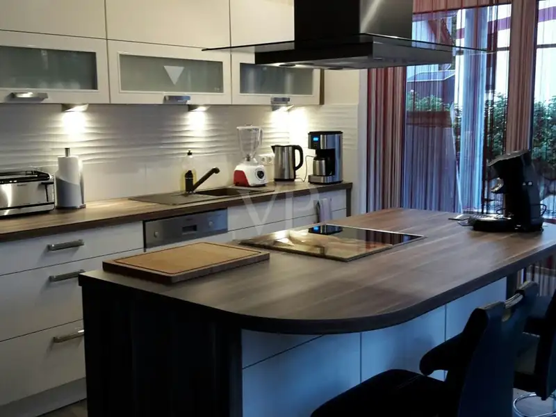 The house has a total of 11 rooms, including 7 bedrooms and 6 bathrooms. The 3 high-quality kitchens from Nobilia are a dream for amateur chefs. The quality of the fixtures and fittings is upmarket, as evidenced by the underfloor heating on all floors, the electric shutters, 3 free-standing electric fireplaces and 1 wall-mounted fireplace, as well as the sauna and relaxation room in the basement.