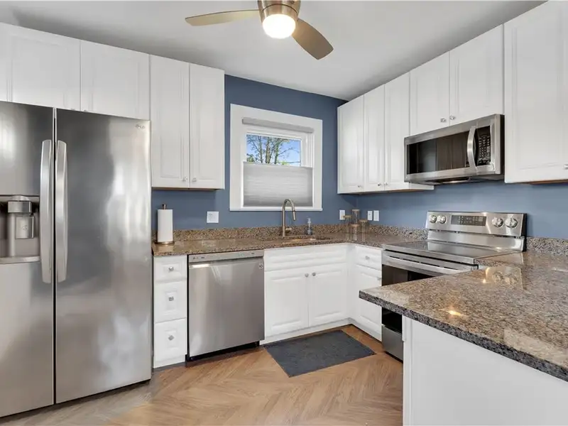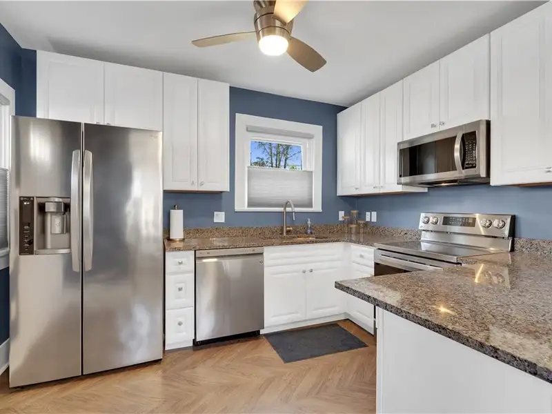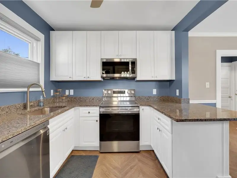 - Sunlit kitchen with granite counters