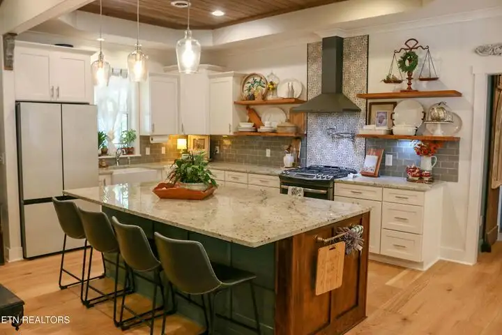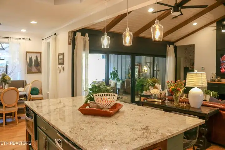 - Kitchen with Granite Counters and Built-in Coffee Bar