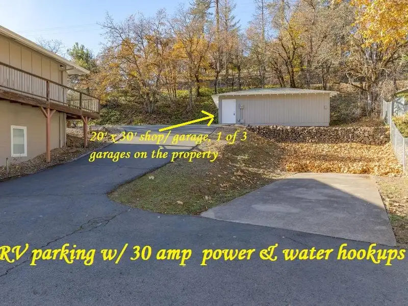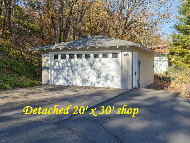 - Two attached garages and detached shop