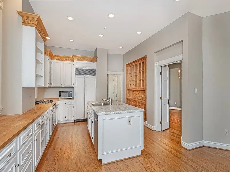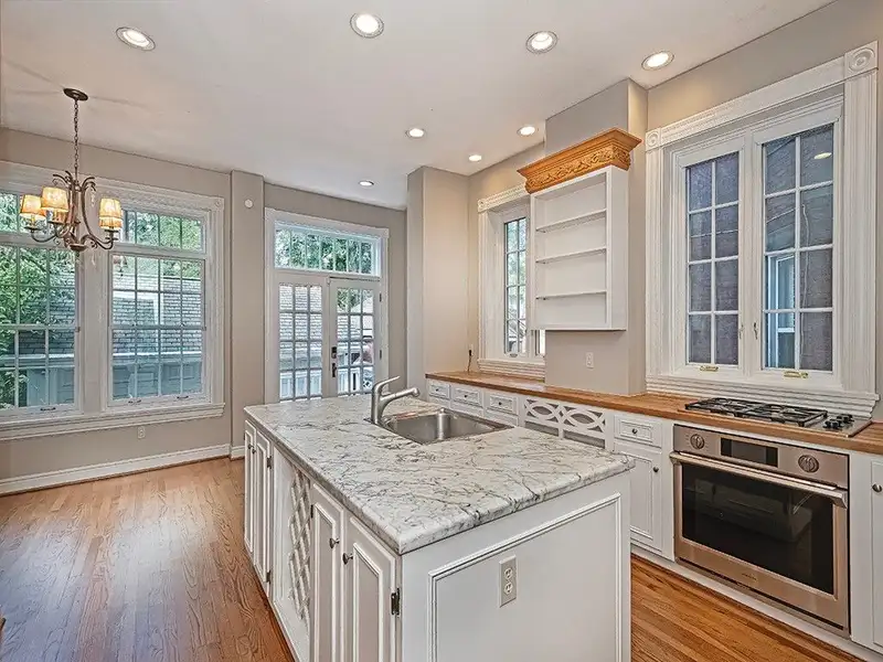 - Large marble center island kitchen