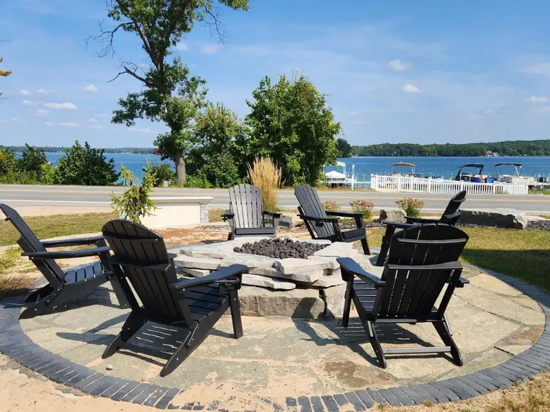 - Pavilion with firepit and lake views