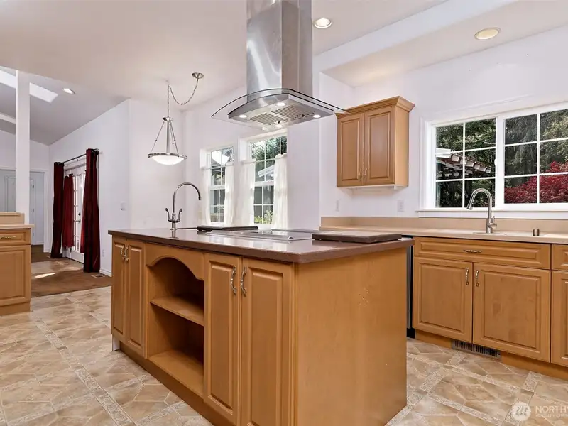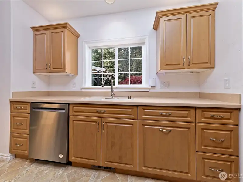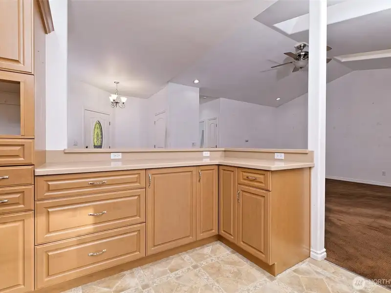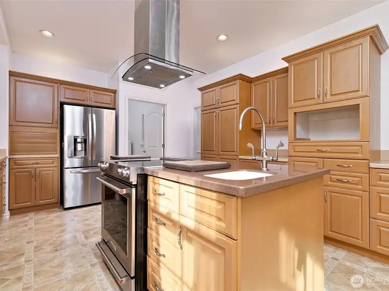 - Corian kitchen counters with high-end appliances
