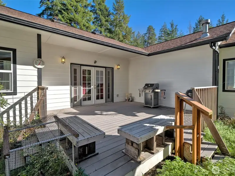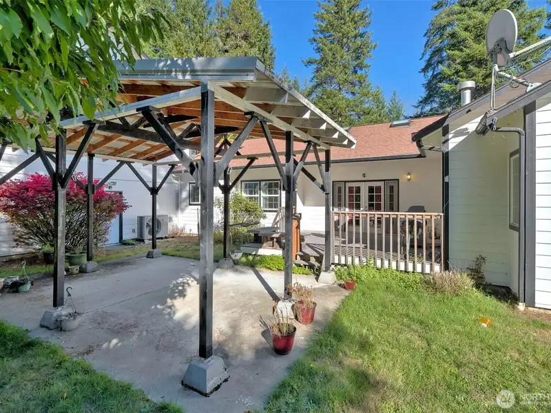 - Covered backyard patio with Trex decking