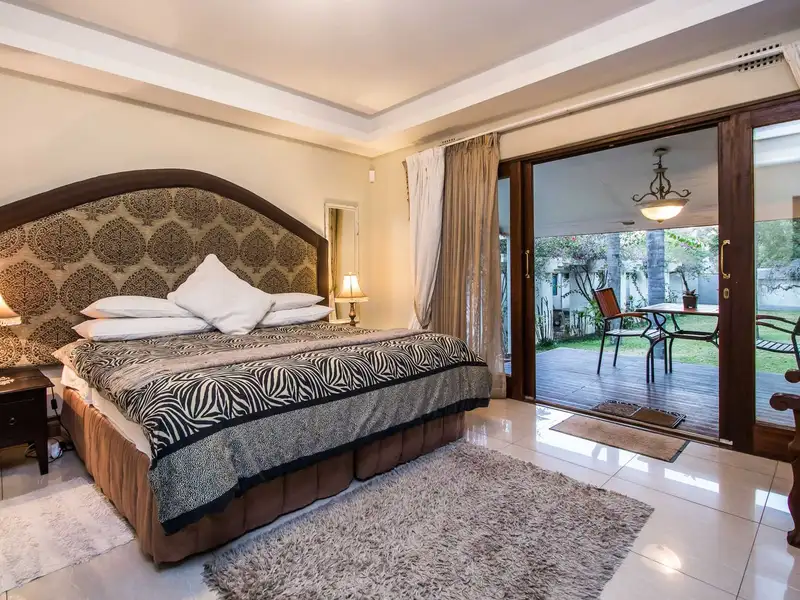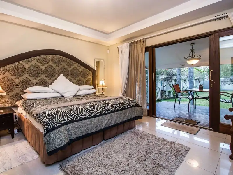 Bedroom 5 (La Afrique): This upstairs bedroom is smaller but cozy, with a walk-in cupboard, and a combination of carpet and tiles.