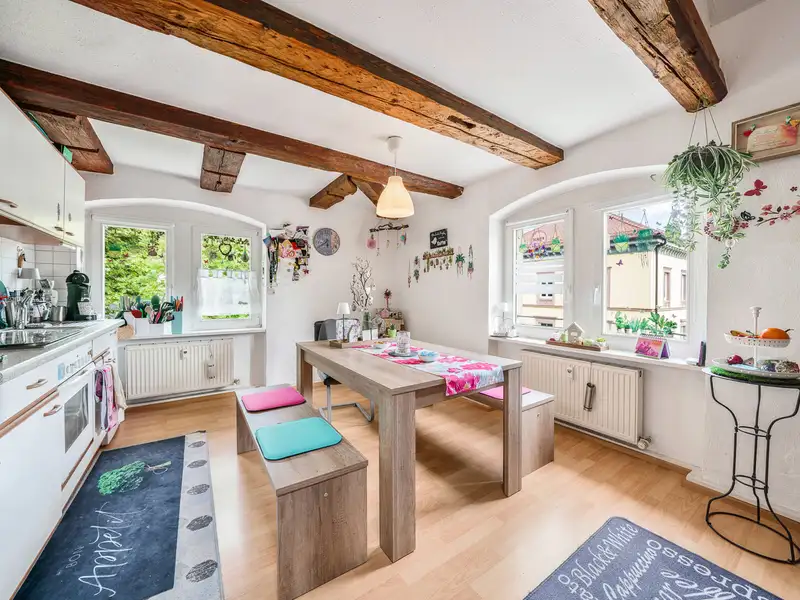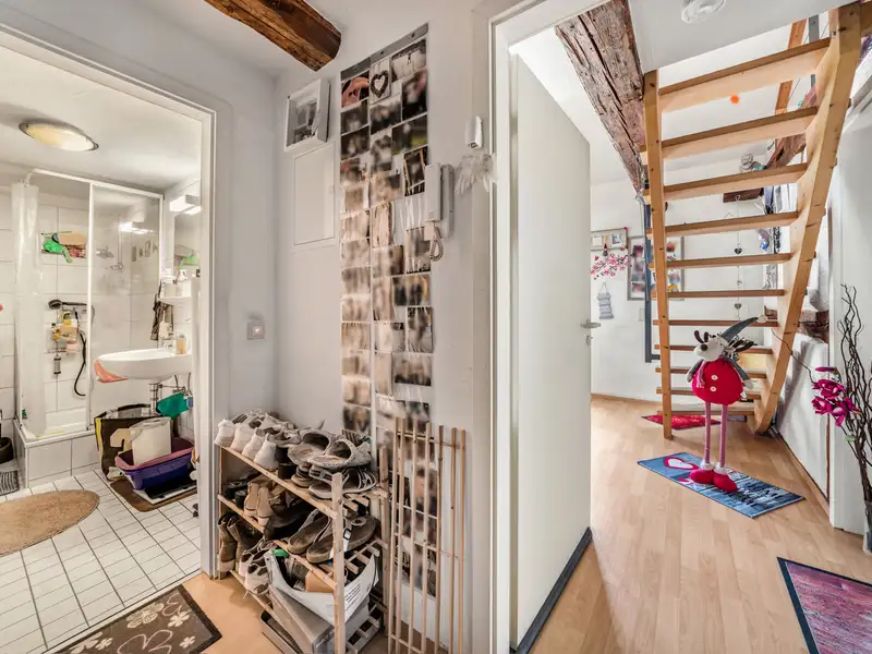 Welcome to your real estate investment We are delighted to offer you this prestigious maisonette apartment for sale in a property built around 1900 and last renovated in 1998. The apartment extends over two and a half rooms, approximately 75 square meters and two floors. There is also a cellar room, a parking space and a shared laundry room. The property is located in one of Sigmaringen's most prestigious streets with many stately and historic buildings. The condition can be described as in need of renovation. The apartment has been occupied by the current tenant for a long time and is therefore particularly suitable as an investment property. The current monthly cold rent is 680 euros and the warm rent is 825 euros. The amount of the house maintenance payment is approximately 208 euros per month, while there are already approximately 6,712 euros in reserves. The gross yield is around 3.9 percent. Upon entering the building, a directly adjacent staircase leads up to the second floor, where the advertised apartment is located. From the hallway, you first enter a small hallway belonging to the apartment, from which you can reach the bathroom and the kitchen with dining area, which is counted as a half-room here. From this room, a door leads to the bedroom and a staircase to the gallery on the top floor, which is currently used as a living room. This layout gives the apartment a unique spatial dynamic. The staircase between the two levels creates an open and light-flooded connection that has a positive effect on the sense of space. The functional bathroom includes a shower cubicle, a washbasin and a WC. The kitchenette offers a cooker/oven combination, a stainless steel sink and a refrigerator, but was already installed in 1998. The location of the property impresses with its excellent public transport connections as well as its proximity to the city center and thus to shopping facilities, cultural institutions and restaurants, which guarantees a stable demand for living space, whether from tenants or future owners. Feel free to contact us and see for yourself the advantages that this apartment has to offer.