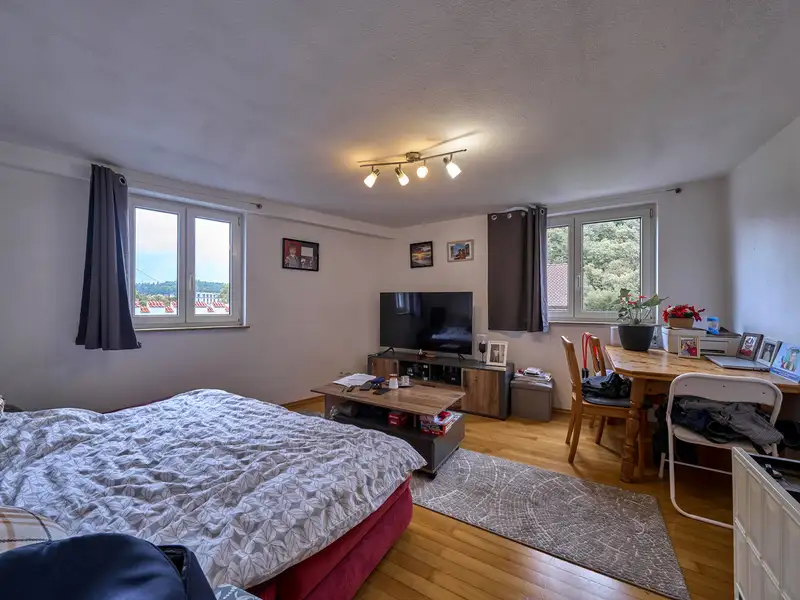 We are very pleased to be able to offer you this historic apartment building in a central location in Sigmaringen, which was built around 1890 on a 276 square meter plot in half-timbered construction, for sale. The property offers six residential units ranging from 38 to 80 square meters and one to three and a half rooms, five of which are currently rented out and currently generates around 19,000 euros and is expected to generate around 23,500 euros per year once the vacant residential unit has been rented out.