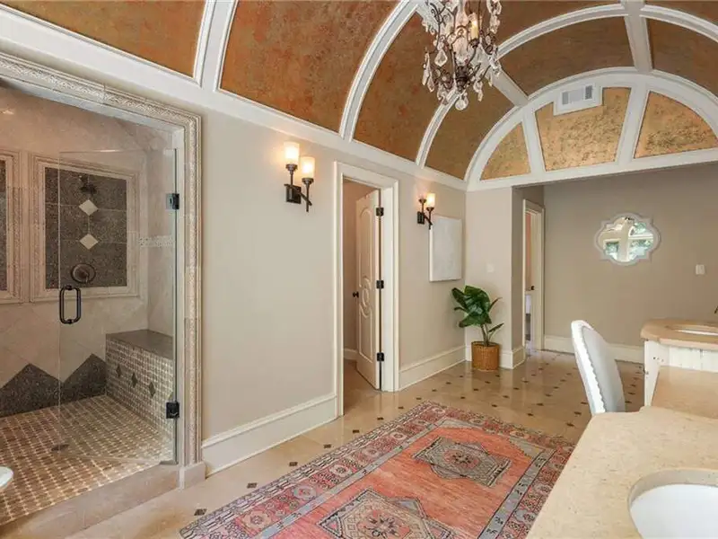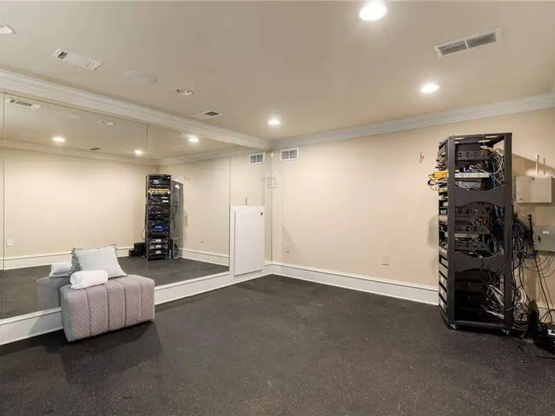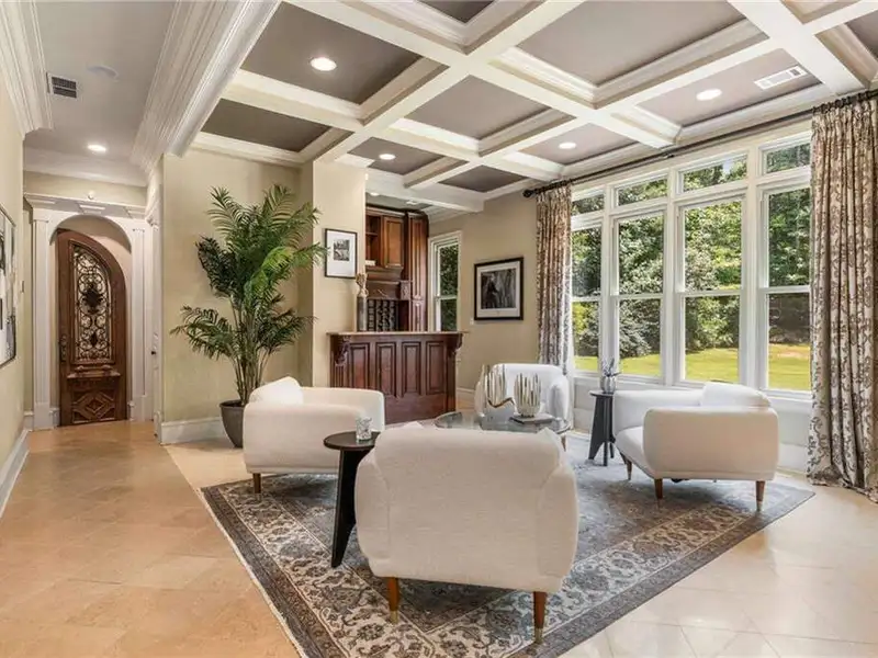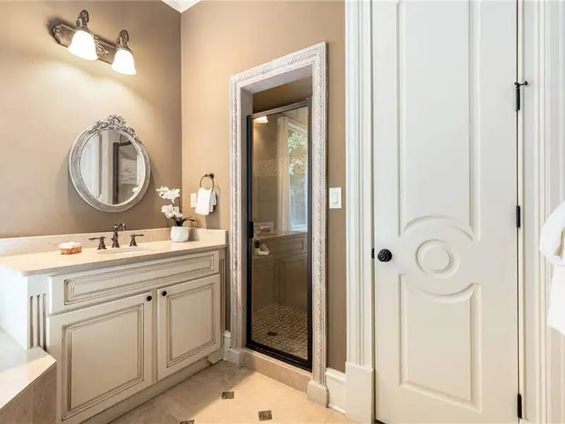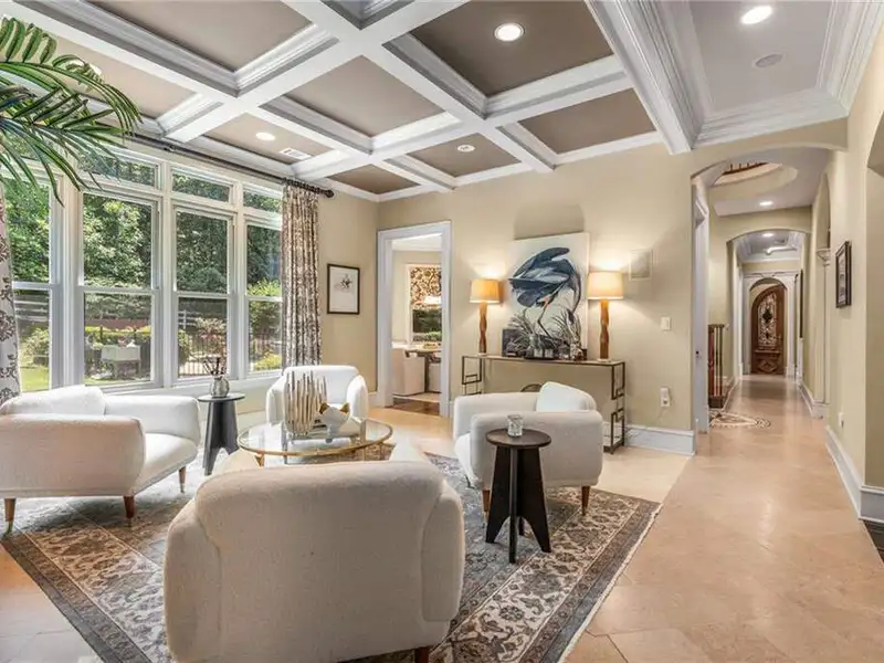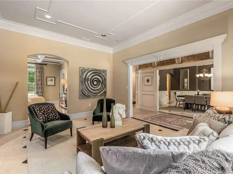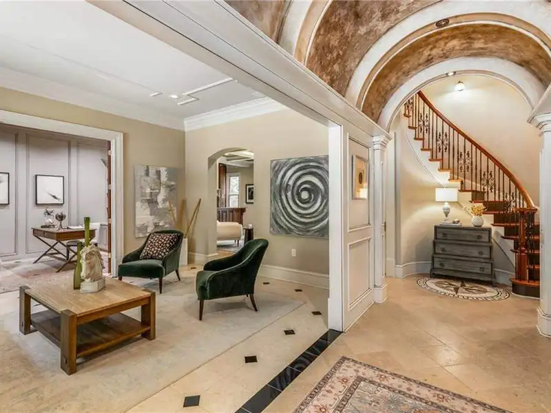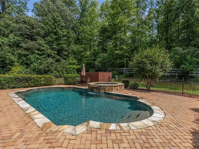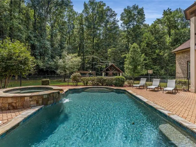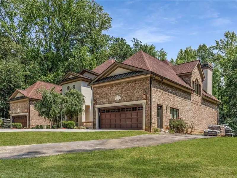 Refined luxury meets resort-style living in this extraordinary 6-bedroom, 5.5-bath European style estate, set on nearly five private acres in the heart of Smyrna. Offering close to 7,000 square feet of beautifully designed living space, this home is the perfect blend of elegance, comfort, and functionality. With a newer roof and a spacious four car garage, the property has been meticulously maintained and thoughtfully upgraded throughout. From the moment you step inside, you're welcomed by a grand chisel stone arch hallway and a dramatic spiral staircase that immediately sets the tone for the craftsmanship and detail that define the home. Imported Italian tile flows underfoot, leading you into the heart of the home a custom-designed chef's kitchen featuring a large island with counter seating, prep sink, custom cabinetry, and stainless steel appliances. The kitchen opens into an inviting informal dining space with a built-in bar, creating an ideal layout for entertaining and everyday living. The main level also features a bright and airy living room filled with natural light, a formal dining room, a cozy great room, a laundry closet, a versatile multi-use room, and a private bedroom with ensuite bath perfectly suited for a nanny suite, in-law suite, or guest accommodations. Movie nights are elevated in the private, theater-style media room, complete with surround sound, a projector, and tiered seating for the ultimate in-home cinema experience. Just beyond the living spaces, step out into your own personal backyard resort. Lush, manicured landscaping surrounds the saltwater pool, jacuzzi, covered outdoor fireplace, firepit, and basketball court offering endless opportunities for relaxation, entertaining, and recreation. Upstairs, the expansive owner's suite is a true sanctuary. Vaulted ceilings and large windows create an open and serene environment, while the luxurious en-suite bath features a soaker tub, walk-in shower, and an oversized custom closet. The suite also includes a fully equipped private gym, providing a convenient and motivating space to stay active without leaving home. Additional highlights include a Control4 whole home audio/video system and integrated smart home technology throughout. Ideally located just minutes from shopping, dining, and major highways, this exceptional estate offers a rare opportunity to own a private retreat in one of Smyrna's most desirable areas. Every detail has been considered this home is truly one of a kind. Situated just minutes from The Battery, Truist Park, Downtown Smyrna, Vinings, and major highways