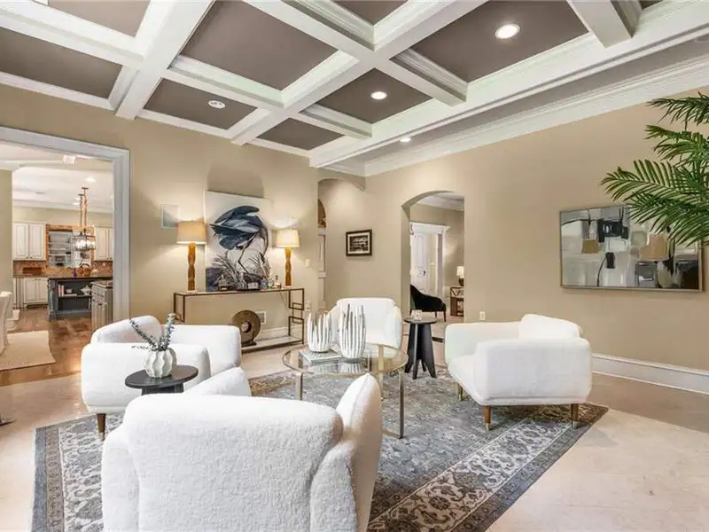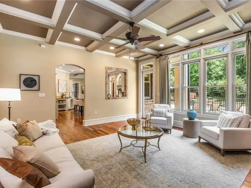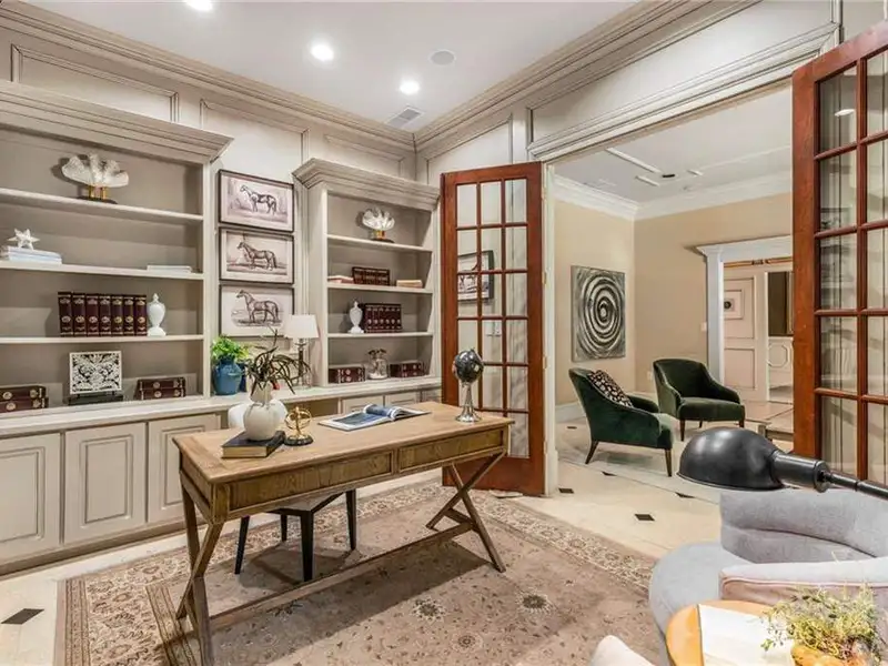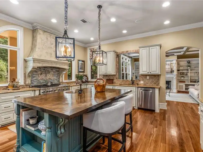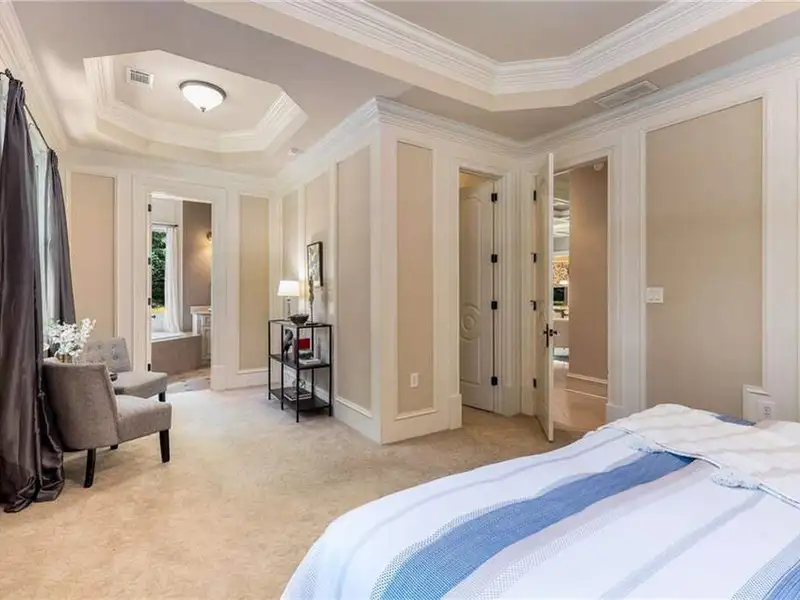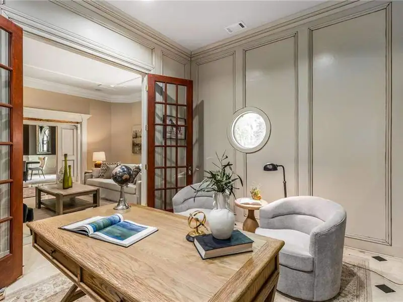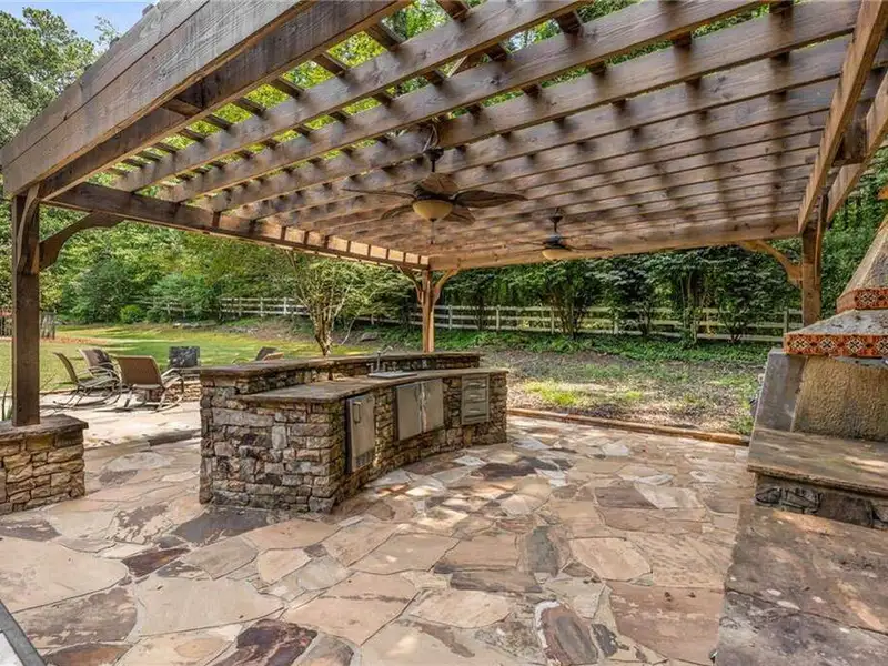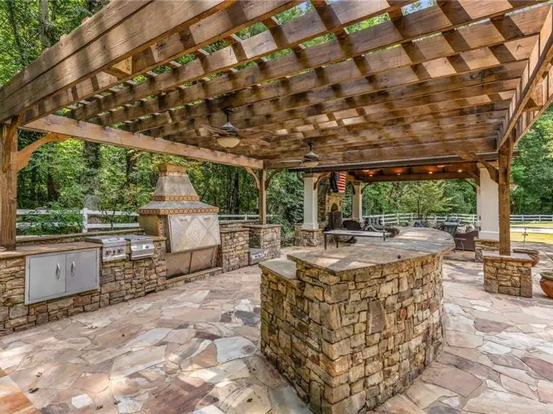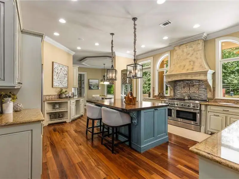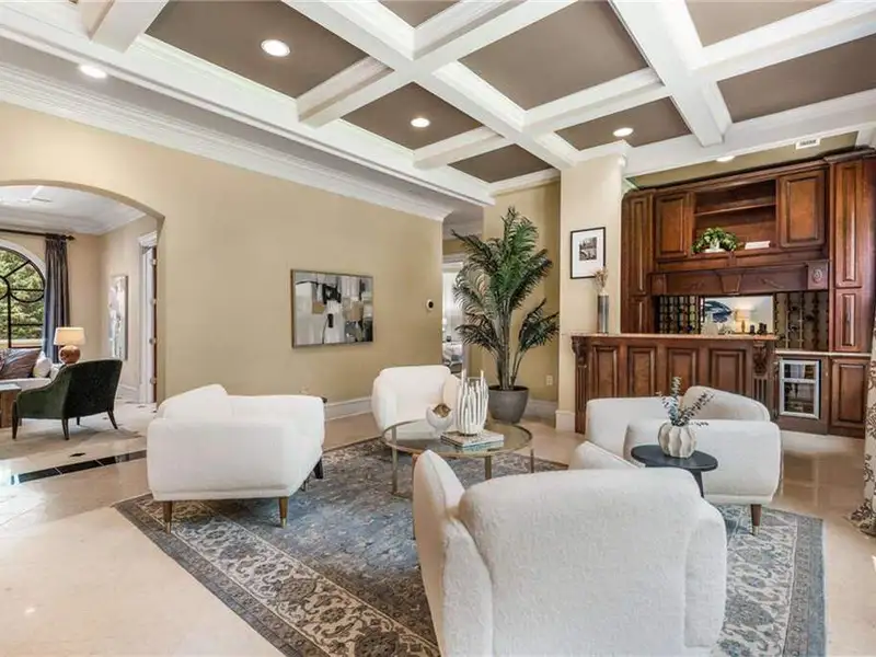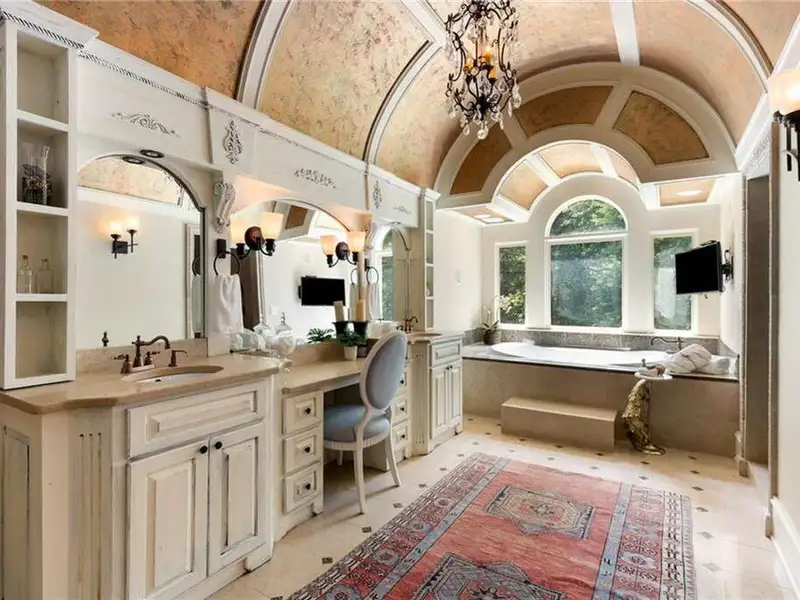 Refined luxury meets resort-style living in this extraordinary 6-bedroom, 5.5-bath European style estate, set on nearly five private acres in the heart of Smyrna. Offering close to 7,000 square feet of beautifully designed living space, this home is the perfect blend of elegance, comfort, and functionality. With a newer roof and a spacious four car garage, the property has been meticulously maintained and thoughtfully upgraded throughout. From the moment you step inside, you're welcomed by a grand chisel stone arch hallway and a dramatic spiral staircase that immediately sets the tone for the craftsmanship and detail that define the home. Imported Italian tile flows underfoot, leading you into the heart of the home a custom-designed chef's kitchen featuring a large island with counter seating, prep sink, custom cabinetry, and stainless steel appliances. The kitchen opens into an inviting informal dining space with a built-in bar, creating an ideal layout for entertaining and everyday living. The main level also features a bright and airy living room filled with natural light, a formal dining room, a cozy great room, a laundry closet, a versatile multi-use room, and a private bedroom with ensuite bath perfectly suited for a nanny suite, in-law suite, or guest accommodations. Movie nights are elevated in the private, theater-style media room, complete with surround sound, a projector, and tiered seating for the ultimate in-home cinema experience. Just beyond the living spaces, step out into your own personal backyard resort. Lush, manicured landscaping surrounds the saltwater pool, jacuzzi, covered outdoor fireplace, firepit, and basketball court offering endless opportunities for relaxation, entertaining, and recreation. Upstairs, the expansive owner's suite is a true sanctuary. Vaulted ceilings and large windows create an open and serene environment, while the luxurious en-suite bath features a soaker tub, walk-in shower, and an oversized custom closet. The suite also includes a fully equipped private gym, providing a convenient and motivating space to stay active without leaving home. Additional highlights include a Control4 whole home audio/video system and integrated smart home technology throughout. Ideally located just minutes from shopping, dining, and major highways, this exceptional estate offers a rare opportunity to own a private retreat in one of Smyrna's most desirable areas. Every detail has been considered this home is truly one of a kind. Situated just minutes from The Battery, Truist Park, Downtown Smyrna, Vinings, and major highways