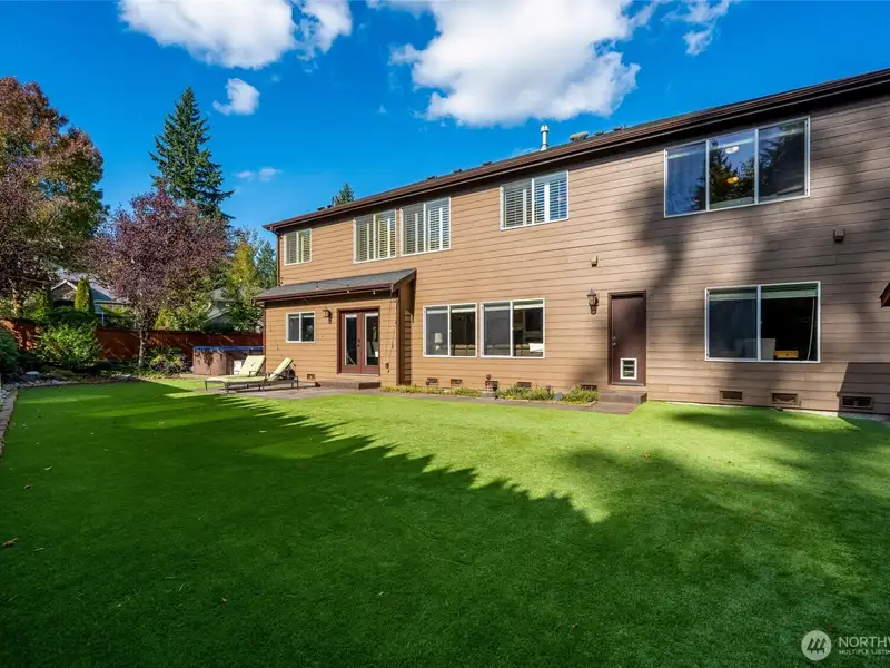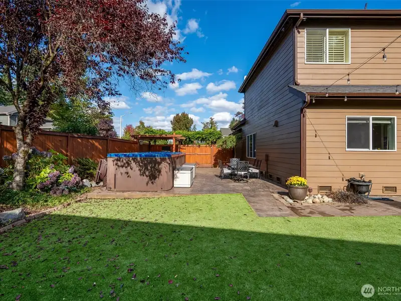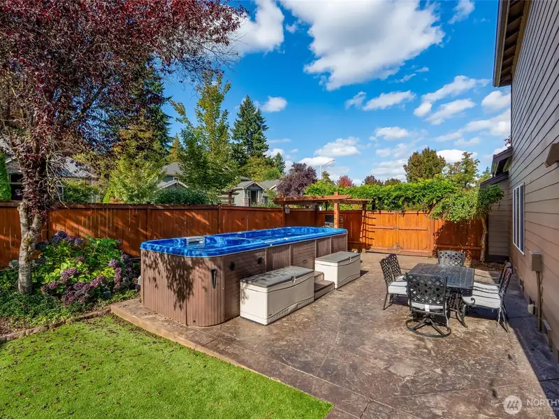 - Backyard includes swim spa and turf