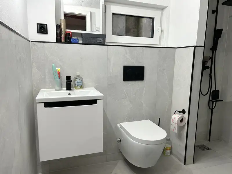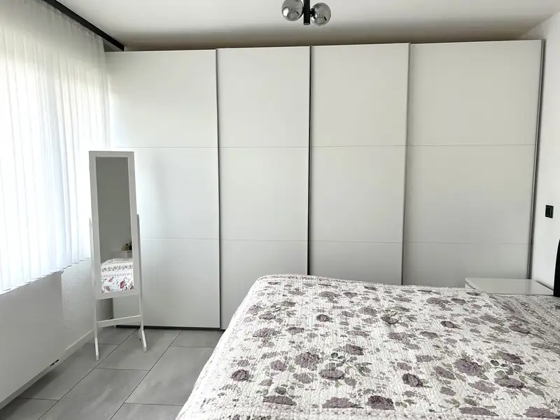 Two bedrooms offer plenty of space to retreat to. The room concept is complemented by a completely renovated bathroom with a floor-level shower and a new guest WC - these, as well as the electricity and water pipes, were renewed as part of the modernization in 2023. New radiators and modern light switches further enhance living comfort. All floor coverings, doors and frames and other furnishing details have also been renewed and create a harmonious overall impression. The high-quality front door element and the triple-glazed window elements with electric shutters support the theme of security and energy efficiency. The central heating ensures a pleasant living climate all year round.