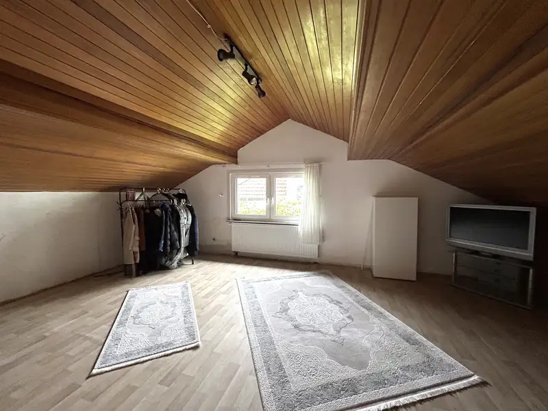 The basement offers a further 60 m² of usable space, which can be used as a guest room, for housekeeping and as additional storage space. A new shower room has also been installed here. The attic, which has not yet been developed but is equipped with windows and radiators, can offer further potential uses.