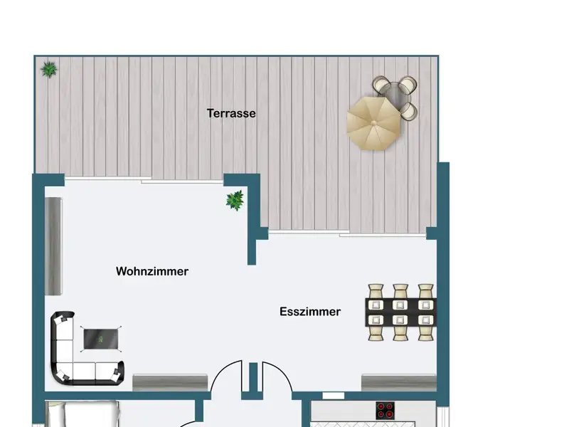 The living space of approx. 99 m² is distributed over four rooms on the ground floor and the additional usable space in the basement of around 60 m² offers a wide range of possible uses. The focal point of the house is the bright, open-plan living and dining room, which, thanks to two large sliding door elements, allows a seamless transition to the terrace and garden. Floor-to-ceiling window elements provide plenty of natural light here and enhance the pleasant feeling of space. Next is the modern fitted kitchen, which was newly installed in 2023 as part of the comprehensive interior renovation and is equipped with high-quality appliances.