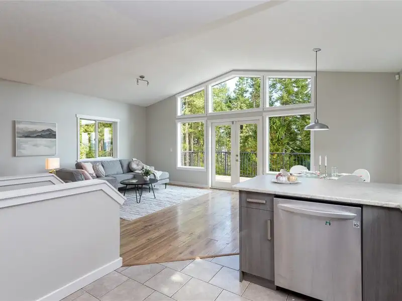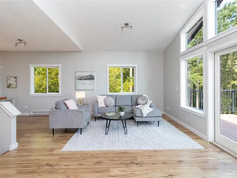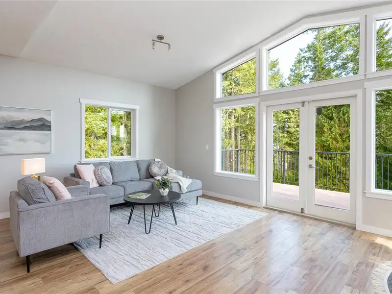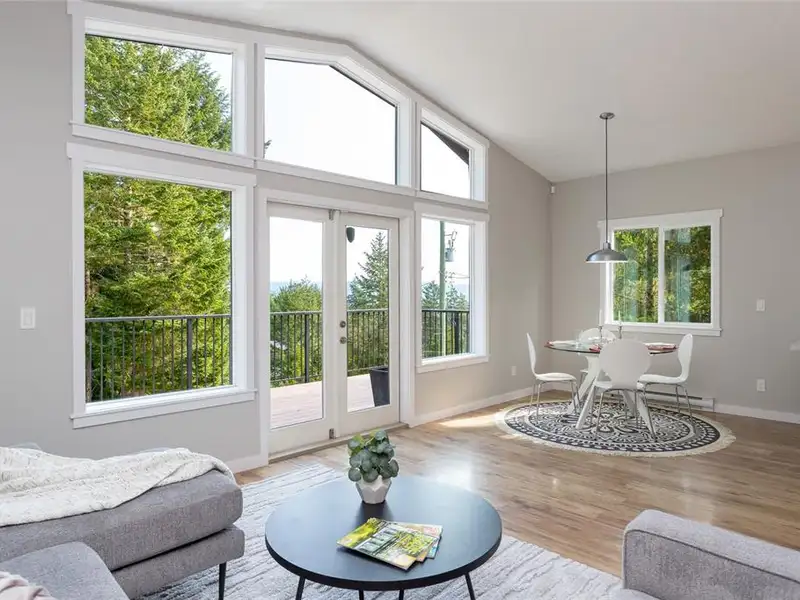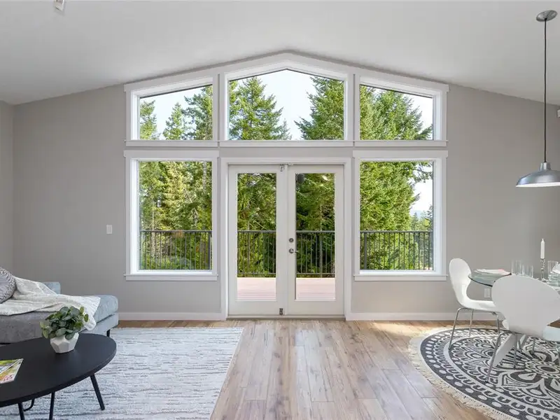 - Dramatic floor-to-peak windows and vaulted ceilings