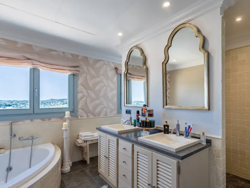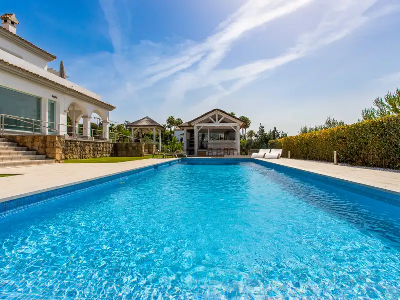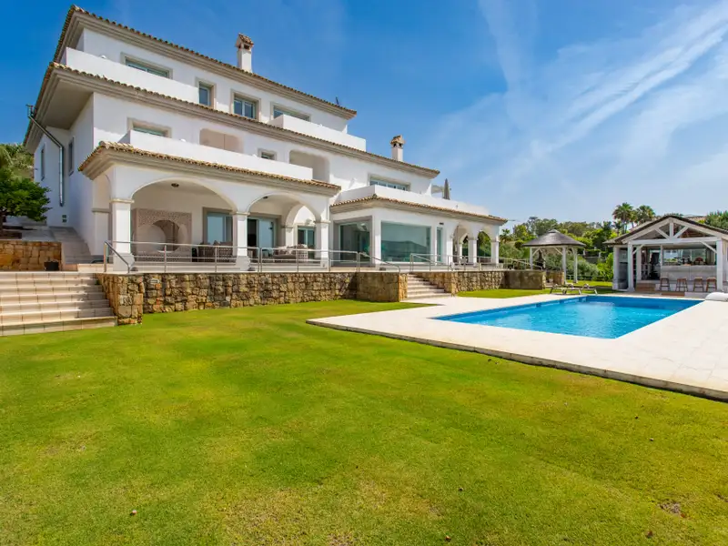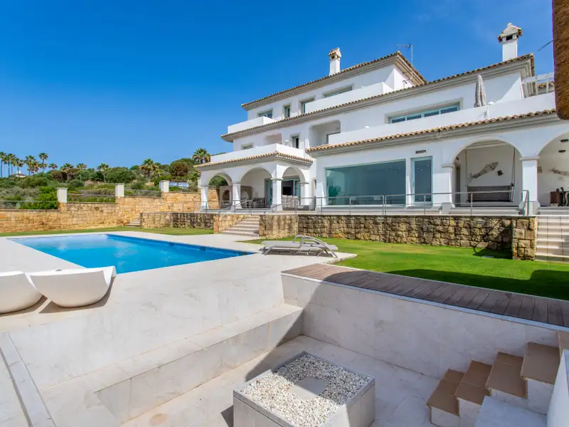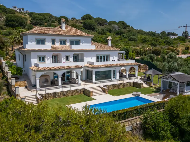 This stunning designer villa is located in the exclusive and secure area of La Reserva de Sotogrande. With a privileged location and modern architecture, this property offers a luxurious and comfortable lifestyle with spectacular see views. The villa consists of 5 bedrooms and 9 bathrooms, making it the perfect home for a large family or for entertaining guests. With a built area of 783m² and a plot of 2,177m², there is plenty of space to enjoy the tranquility and privacy this property provides. Upon entering the villa, you are welcomed by a beautiful foyer with a large chandelier hanging from the ceiling of the upper floor. On the main floor, there is a spacious living-dining room with a fireplace, which enjoys abundant natural light thanks to its large windows and terrace with panoramic and sea views. Here you will also find a large kitchen with an island, perfect for enjoying gastronomy, as well as a laundry area, patio, and pantry. The main floor also features an office with a bathroom, and 3 bedrooms with en-suite bathrooms, two of which have private terraces. The master suite is located on the upper floor and boasts two private terraces, a cozy lounge with a fireplace, a walk-in closet, and a luxurious bathroom with a jacuzzi. From these terraces, you can enjoy panoramic and sea views, providing a relaxing and tranquil atmosphere. On the lower floor, there is a room converted into a cinema, a gym with two showers and a bathroom, as well as a massage room, a kitchen and lounge, making it a perfect area for entertaining friends and family or for keeping fit and relaxing. The garage accommodates 4 vehicles, providing ample parking space. Outside, the private pool stands out, surrounded by a beautiful private garden. The pool area features a chill-out zone with an outdoor gas fire pit, a barbecue area, summer dining area, and a pool bar, making it the ideal place to relax and fully enjoy the outdoors. The property is equipped with air conditioning and central heating, underfloor heating throughout, and is sold fully furnished. The development offers 24-hour security to provide peace of mind and privacy for residents. Additionally, it is just a few meters from the security gate and the Sotogrande International School, making it an excellent option for families with children. The La Reserva golf course and its clubhouse, as well as the artificial beach and The Beach club, are also just steps away from this villa. Sotogrande offers a tranquil and luxurious lifestyle, with activities for all ages throughout the year. With a marina featuring countless restaurants, the famous international Polo tournament held in summer, and international golf championships taking place in Sotogrande, it is the perfect place for sports and luxury enthusiasts who do not want to compromise on tranquility and privacy. Its golden sandy beaches ensure magical summers alongside the Mediterranean breeze. This villa offers a luxurious lifestyle with every imaginable comfort. With breathtaking panoramic and sea views, a wide range of features, and an exceptional location, this property is truly unique and must be seen to appreciate its beauty and elegance. Do not hesitate to request more information and book a viewing with us.