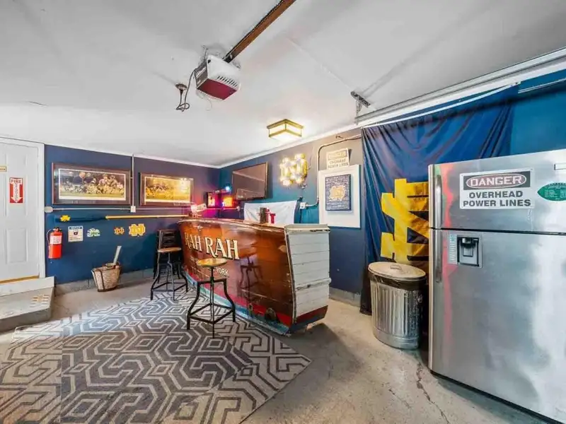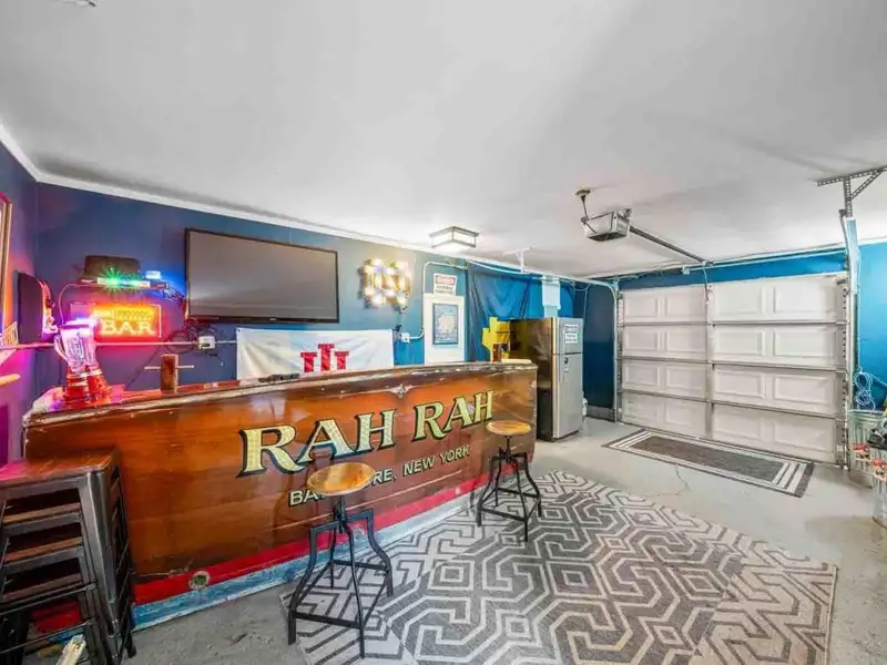 - Garage with bar, TVs, and grill
