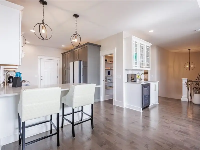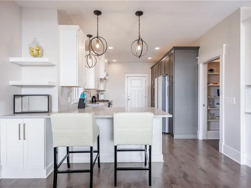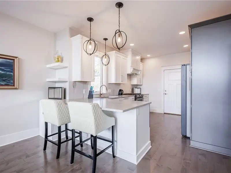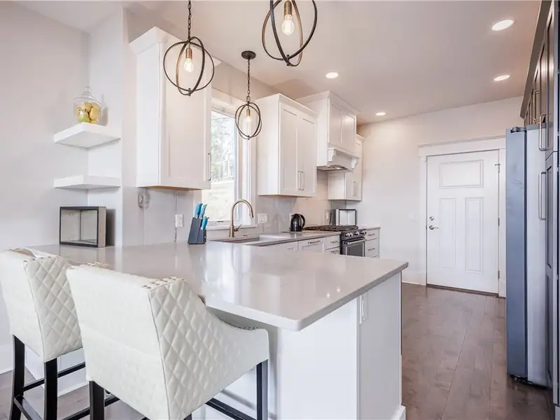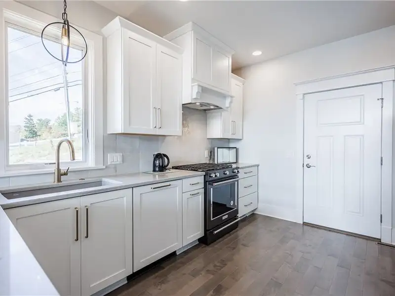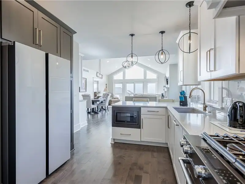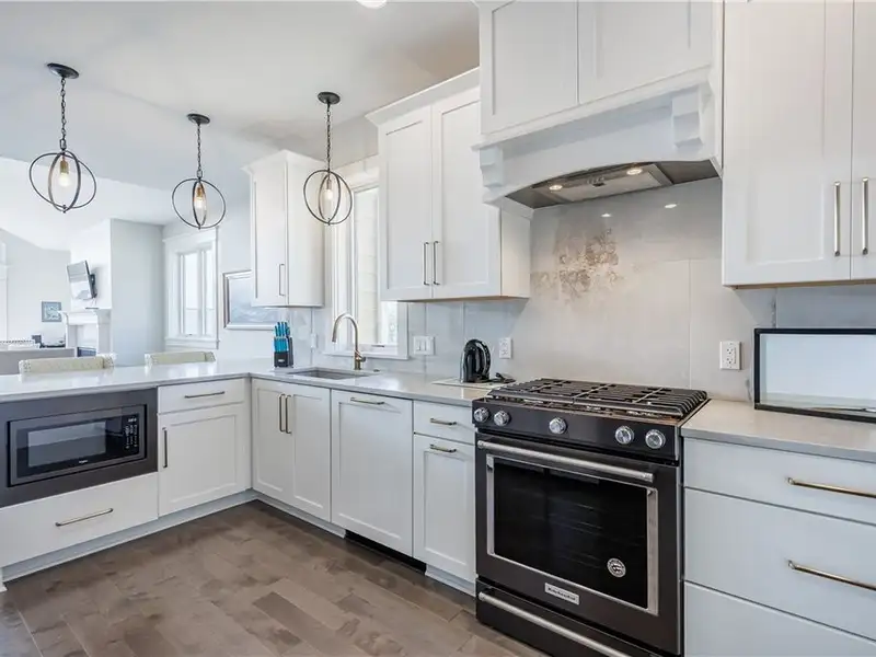 - Chef's kitchen with marble counters and gas range