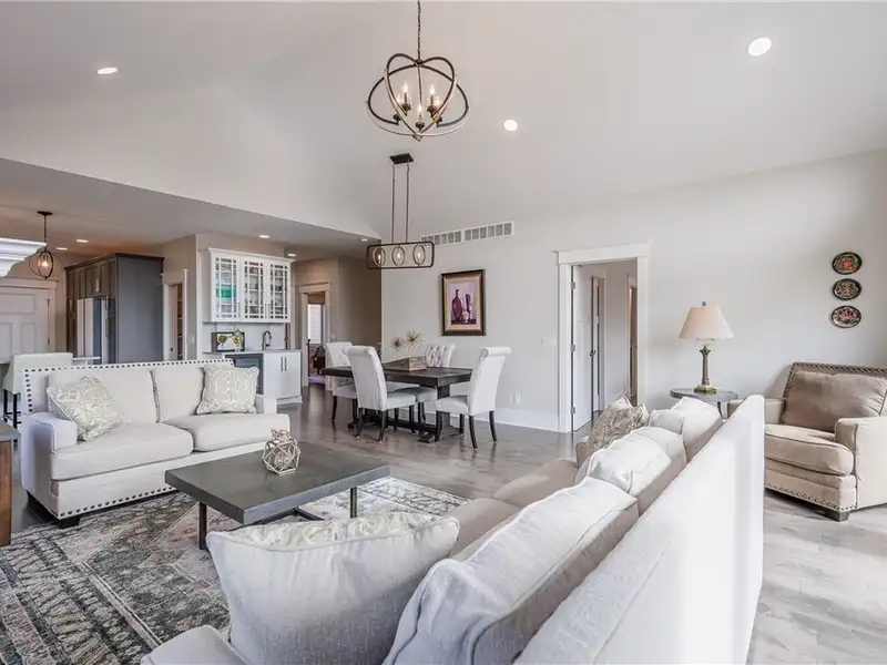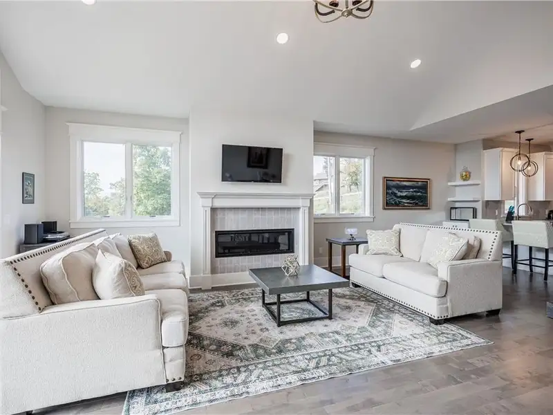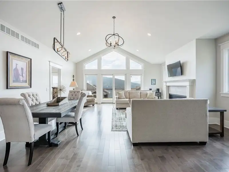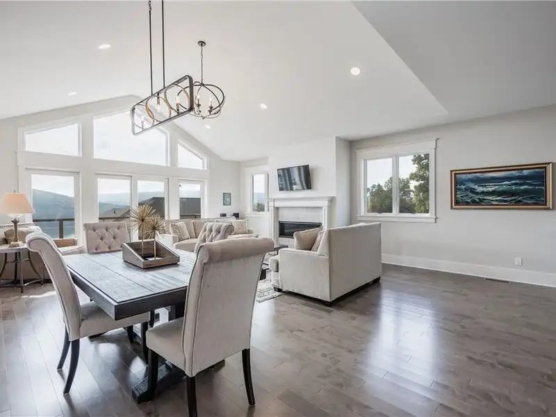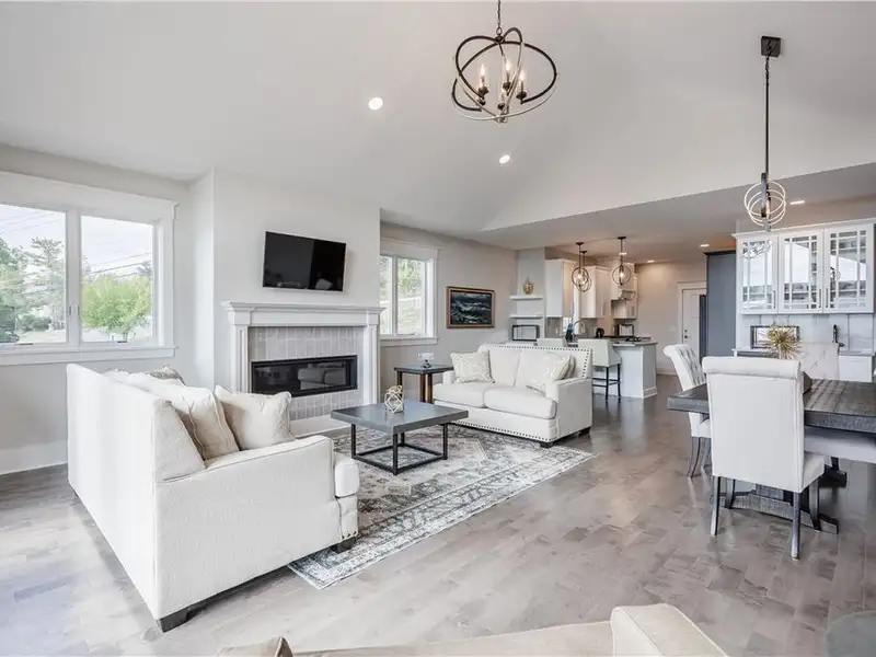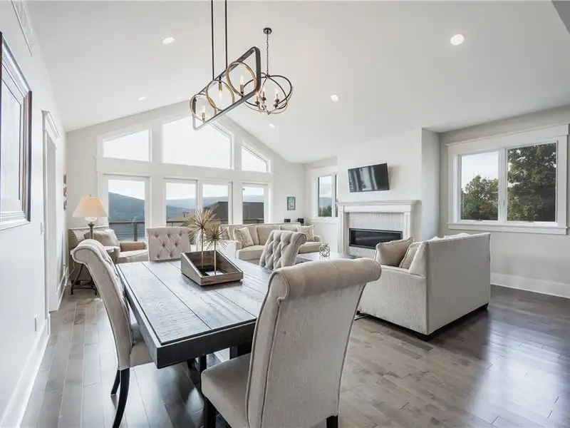- Open floor plan with cathedral ceilings and fireplace