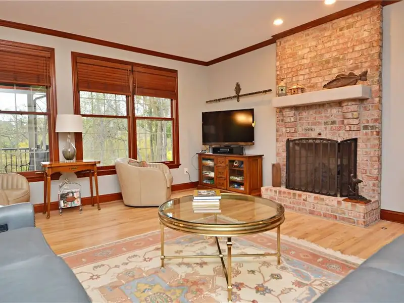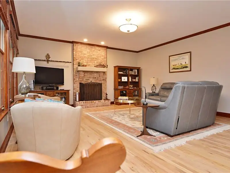 - Living room with hardwood floors and fireplace