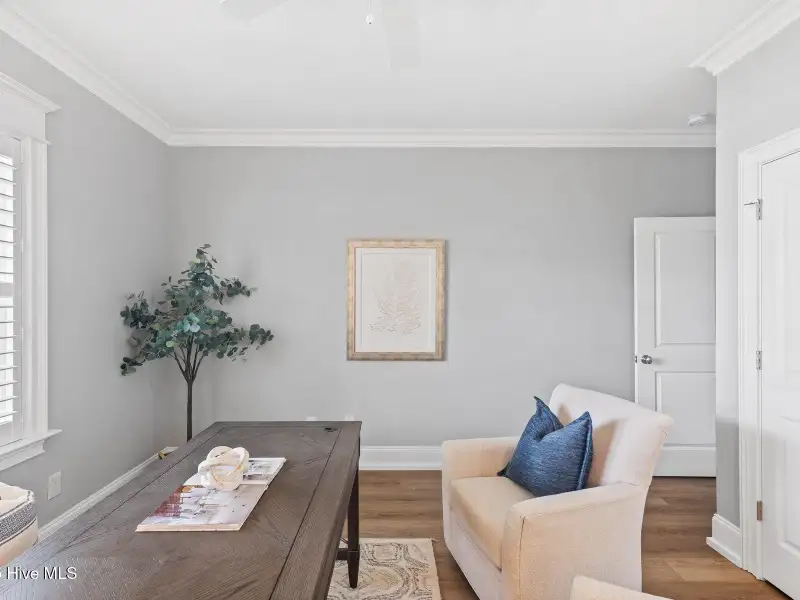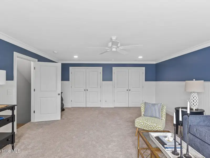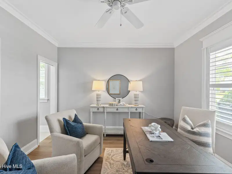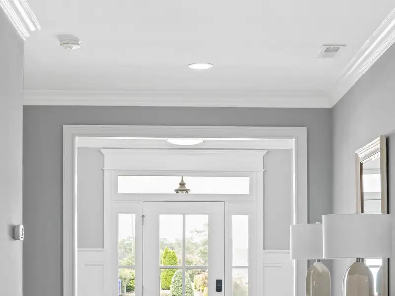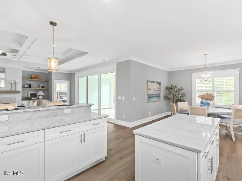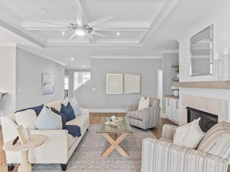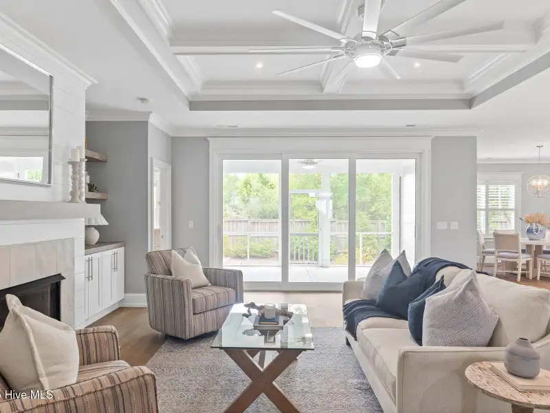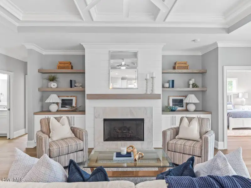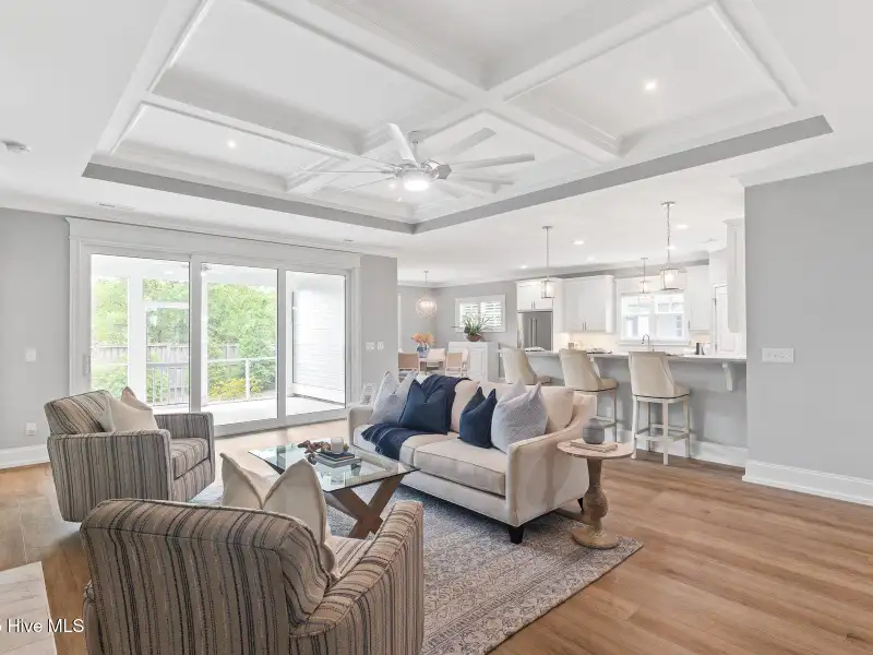 - Coffered ceiling in living room
