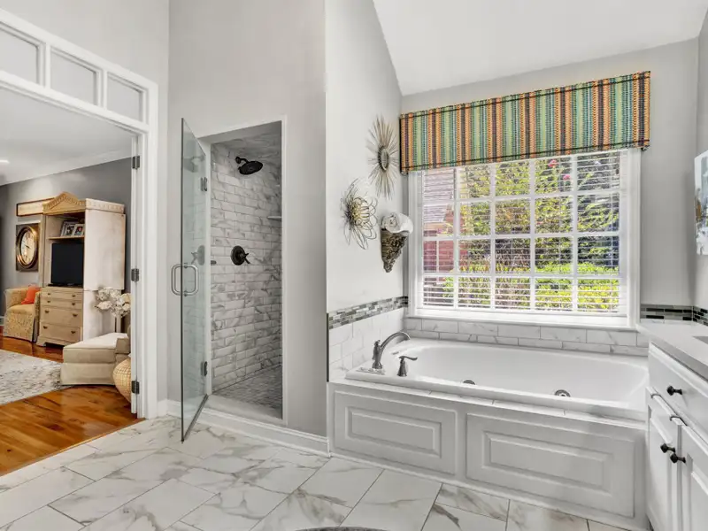 Welcome to this quality-built custom brick home, thoughtfully designed for comfort, beauty, and ease of living.Nestled within the prestigious Carolina Country Club?complete with 24/7 gated and guarded security?this home sits proudly on a level 0.85-acre corner lot, offering both privacy and curb appeal. Step through the recently replaced gorgeous double front doors into the impressive two-story foyer, where gleaming hardwood floors flow seamlessly throughout the main level, setting the tone for the elegance and warmth found throughout. The newly renovated kitchen is a showstopper, featuring marble countertops, a stunning backsplash, Caf? stainless steel appliances (including a double oven and gas cooktop), a Sub-Zero built-in refrigerator, and an abundance of custom southern white cabinetry. Whether you're enjoying your morning coffee in the breakfast area or preparing a holiday feast for loved ones, this kitchen is as functional as it is beautiful. Entertain with ease in the spacious dining room, the perfect place for family gatherings and cherished heirlooms. Afterward, unwind in the massive great room, where soaring ceilings, abundant natural light, and a cozy gas fireplace create a welcoming retreat. French doors open to the private backyard, providing a seamless indoor-outdoor flow for gatherings or quiet relaxation. A recently updated powder room adds style and convenience for guests. Across the home, on the main floor, the luxurious primary suite offers a peaceful retreat and an oversized walk-in closet with built-in shelving. Double doors open to a spa-like bathroom that was just remodeled featuring dual vanities, a jetted tub, and a separate tiled shower. Work from home? This is the perfect office with built-in shelving and overlooks the front landscape. Head upstairs to three additional bedrooms that provide comfort and flexibility for family or guests, along with two well-appointed bathrooms to serve the space. Down the hall, a versatile family room is perfect for movie night and features a wet bar with a mini-fridge for beverages and snacks- this room can be accessed by the back staircase off the kitchen too! Lastly, an exercise room which could be a playroom, sewing room or home office ensures there's room for every need. Step outside to enjoy your own private oasis. The large backyard offers endless possibilities?gardening, play, or simply relaxing on the deck with a glass of wine. The corner lot provides extra space and privacy, while the manicured landscaping enhances the home's timeless beauty. Additional highlights include a three-car garage, ample storage, and membership opportunities at Carolina Country Club, where you can enjoy golf, tennis, swimming, and fine dining just minutes from your doorstep. This home truly blends custom quality, modern updates, and everyday comfort in one of the area's most sought-after communities.