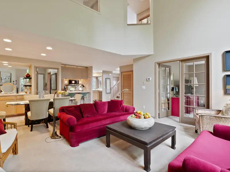 - Open-concept main floor with cathedral ceilings