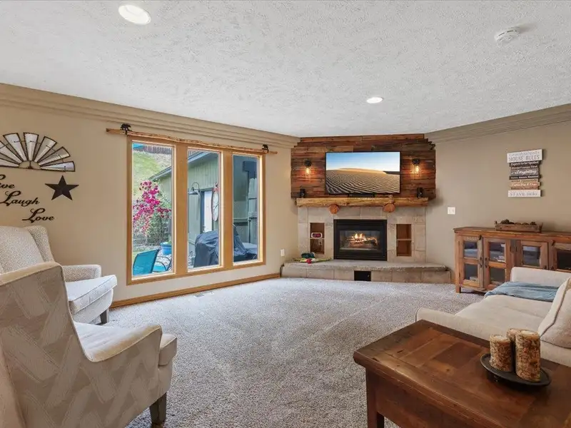 - Family room with cozy fireplace