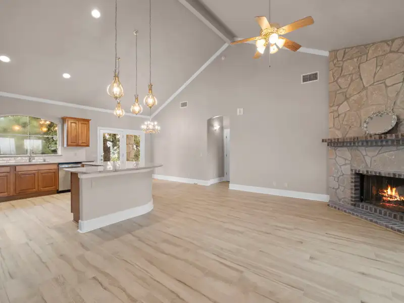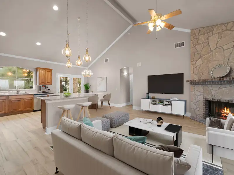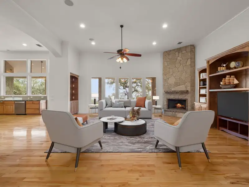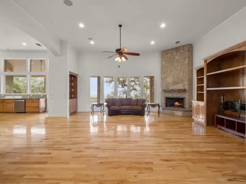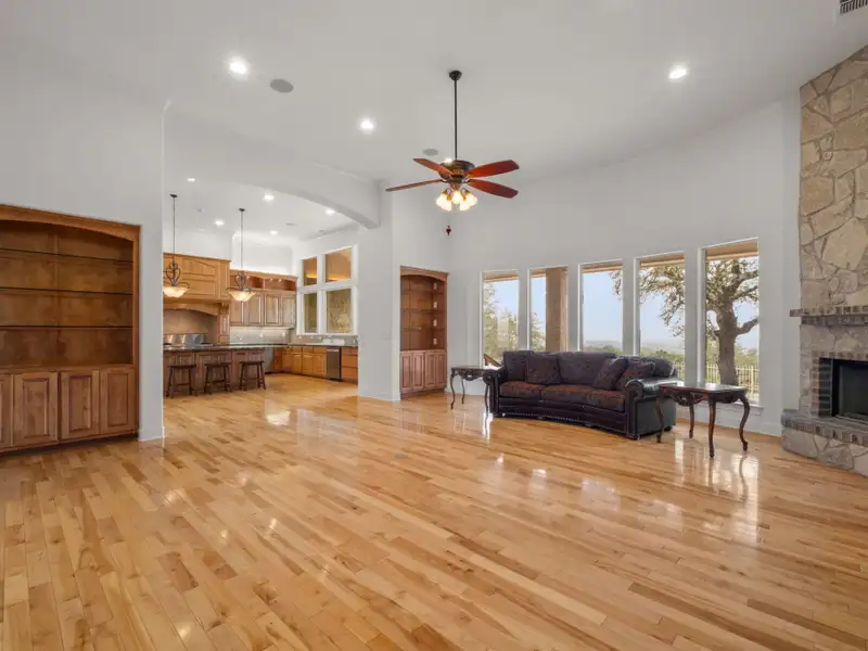 Tucked away in the rolling landscapes of Spring Branch, Texas, this Mike Dawson Custom Home is a symphony of luxury, comfort, and Hill Country charm. Set on over five private acres, this estate is designed for those who seek serenity without sacrificing sophistication. As you approach, the beauty of the natural surroundings sets the stage, offering a sense of peace and exclusivity. Step inside, and you're greeted by soaring ceilings, pristine oak wood flooring, and walls of windows, flooding the space with natural light and framing breathtaking views of the rolling Hill Country terrain. The open-concept design creates a seamless flow-perfect for both grand entertaining and intimate family moments. The heart of the home is its gourmet kitchen, a culinary sanctuary thoughtfully designed for those who love to cook and entertain. Outfitted with a Five Star six-burner gas range, stainless steel double-door refrigerator, two dishwashers, and a built-in wine refrigerator, this kitchen blends high-end functionality with refined aesthetics. Granite countertops provide an elegant workspace, while the sink overlooks serene views of the resort-style pool and rolling Hill Country landscape. Just beyond, the formal dining room elevates every meal with its tray ceiling and refined ambiance, creating the perfect setting for intimate dinners or grand social gatherings. The main living area is nothing short of spectacular. Anchored by a custom rock gas fireplace, it exudes warmth and elegance, inviting gatherings, conversations, and cozy evenings by the fire. Thoughtfully designed custom built-ins add both character and functionality, while a state-of-the-art intercom system ensures effortless connectivity throughout the home. For those who cherish entertainment, the media room with a projector setup offers the ultimate retreat for movie nights, game-day excitement, or fun-filled sleepovers-a dedicated space designed for pure enjoyment. The primary suite is a sanctuary unto itself-a masterfully designed retreat that indulges the senses. A dual-sided gas fireplace flickers softly between the bedroom and spa-like en-suite bath, setting the tone for romantic evenings and tranquil mornings. The oversized soaking tub, spacious walk-in shower, and dual vanities create a lavish, spa-inspired experience, while the expansive walk-in closet offers ample storage and organization, ensuring every detail is effortlessly in place. A beautifully appointed guest house provides a luxurious yet inviting space for friends and family, featuring three bedrooms and two bathrooms, including a Jack-and-Jill bath with a glass-enclosed shower. Whether hosting overnight visitors or extended stays, this separate retreat ensures comfort, privacy, and style. Stepping outside, the true magic of this estate unfolds. With its rolling topography, mature live oak trees, and resort-style pool, this home offers an unparalleled connection to nature. Spend mornings savoring coffee on the covered patio, afternoons basking in the Texas sun by the pool, and evenings unwinding beneath a canopy of stars. Beyond its secluded setting, this estate is perfectly positioned-offering both privacy and convenience, with dining, shopping, and entertainment just minutes away. A home of this caliber and craftsmanship is a rare find. From its timeless design to its breathtaking surroundings, 1069 Fawn River Dr. is a Texas Hill Country experience waiting to be embraced. - 12/8/2025 8:16:01 PM