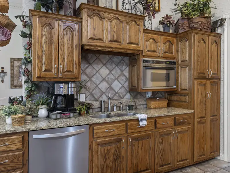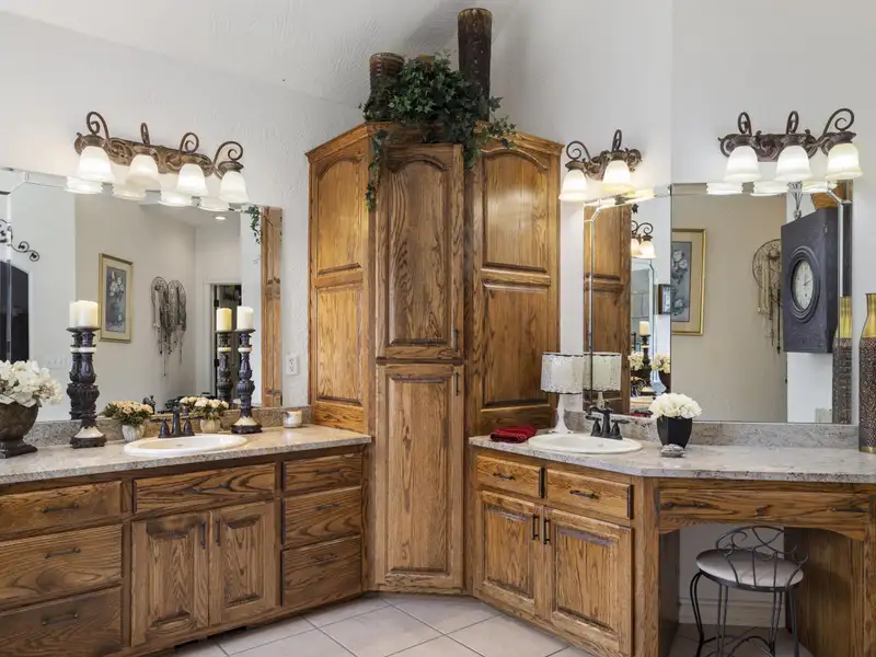 - Custom cabinetry and granite kitchen countertops