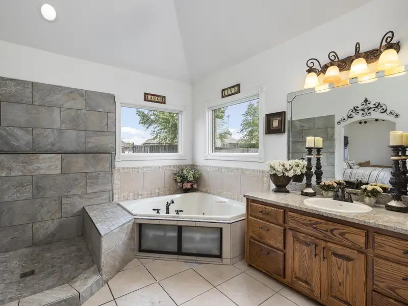 - Primary suite with walk-in closet and jetted tub