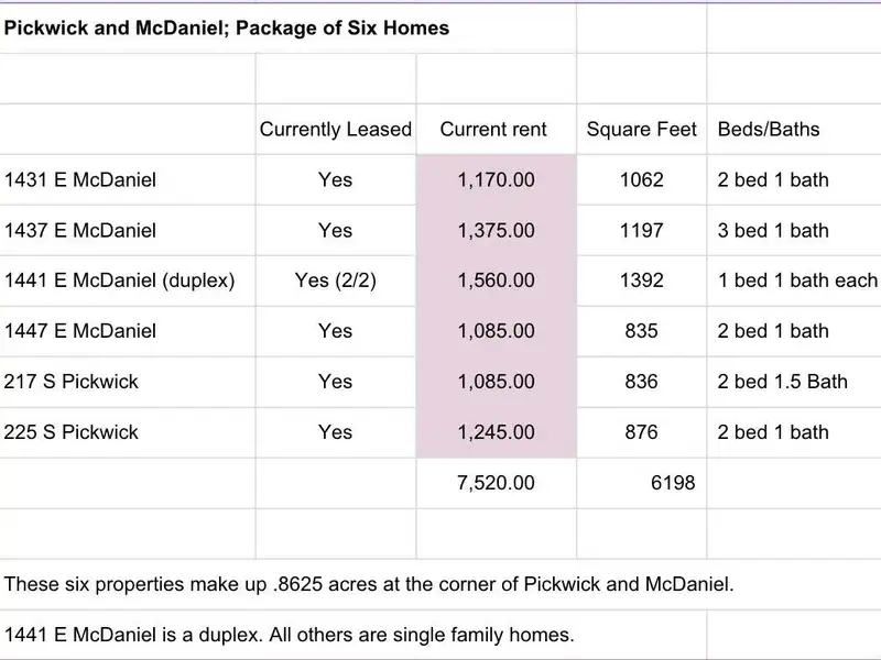 - Five single-family homes and one duplex
