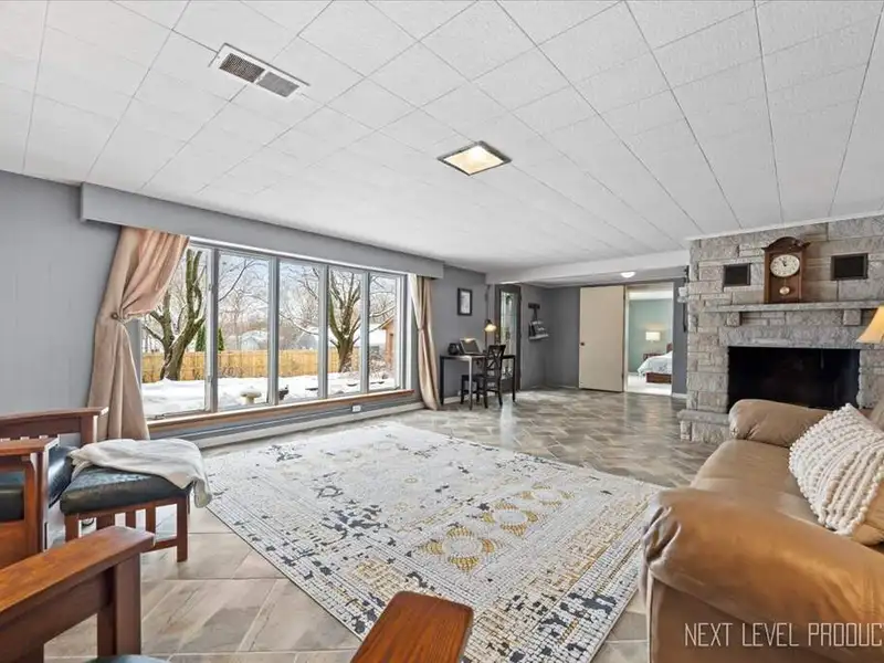 - Wood-burning fireplace in family room