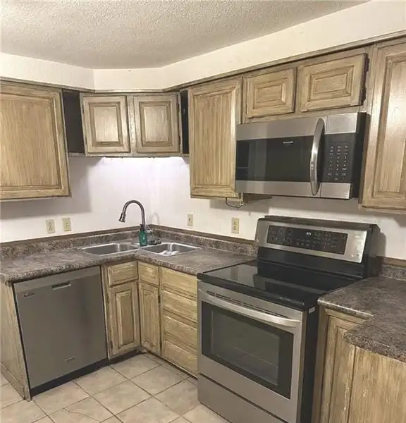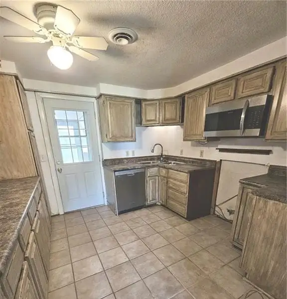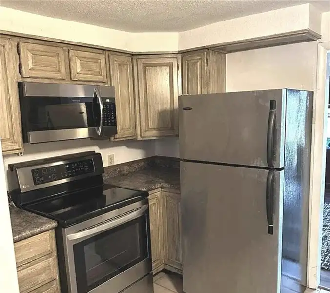 - Kitchen includes stove, refrigerator, dishwasher