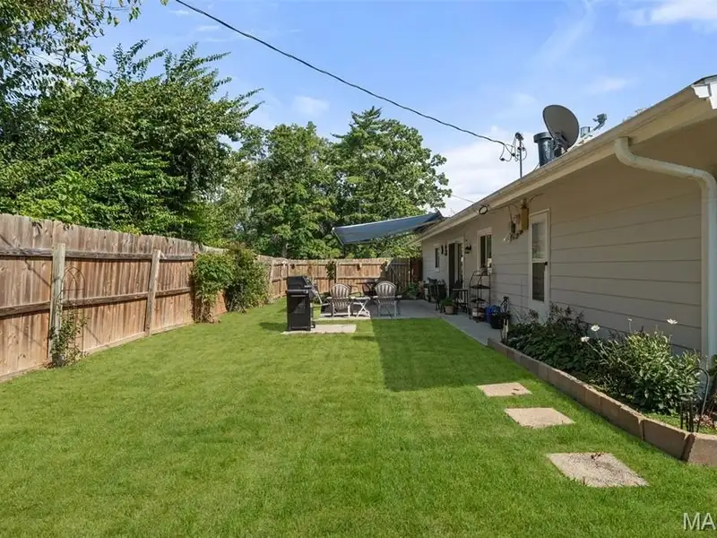 - Large fenced backyard with concrete patio
