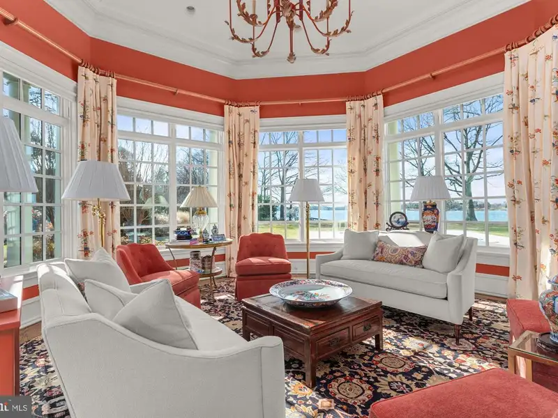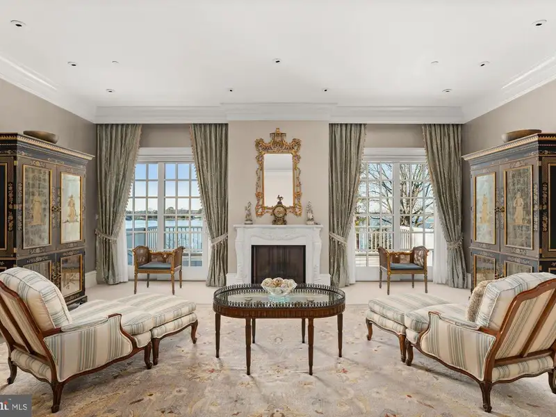 NEW PRICE! Located minutes from downtown St. Michaels, Aqua Vitae the waters of life, sits on 8.6 private acres on Harris Creek, a Chesapeake Bay tributary. This custom-built offering w/ over 400 of direct water frontage is comprised of 3 magnificent structures: a grand main residence, guest cottage, & party barn all highlighted by a waterside pool, pier w/ 4 MLW, pine grove, putting green, extensive landscaping & incomparable craftmanship. The 12,000 SF main residence, positioned to prioritize water views, welcomes you via prominent double lead-glass doors & a grand 3-story foyer w/ dual-staircase. The river room w/ 2-story octagon copula offers 270 views of the property & creek. The TV room w/ 3 exposures & gas-burning fireplace offers double French doors on two sides leading to the wrap-around flagstone patio. The stunning gourmet kitchen is a true chefs dream. Offering oversized island, built-in media/storage cabinet, coffered ceiling, fireplace, 3 sinks, double Subzero fridges w/ freezer drawers, 2 beverage drawers, 3 dishwashers, Wolf microwave & a stainless-steel Lacanche range with 6-burners, pot warmer, warming oven, & 2 ovens. Complimenting the kitchen is a large walk-in pantry w/ dishwasher, sink & extra freezer in hall. Off the kitchen is a covered porch w/ gas fireplace & ghost screens, a perfect spot to enjoy evenings. A large open dining room has 2 custom built-in display cases. The grand salon w/ bay window, gas-fireplace & intricate mantel is reminiscent of Paris. Adjoining the salon is the handsome 2-story curly cherrywood library w/ custom display cases & leaded-glass pocket doors. The adjoining climate-controlled wine room has a wet bar & storage for 750+ bottles. Wood floors flow throughout the entire main level. The main level is completed by an office, powder room & laundry to service the pool, 2 additional powder rooms, elevator to all 4 levels, mud/dog room, rear spiral staircase, guest suite w/ ensuite bathroom, & 2-car attached garage. The 2nd level offers a generous primary suite w/ fireplace & full length terrace overlooking the water. Her wing features dressing room w/ custom built-ins, separate sitting room, & a luxurious bathroom w/ marble tile, separate shower, jetted tub, & vanity. His wing offers an office w/ fireplace, paneled closet leading to separate bathroom w/ shower, travertine stone, & vanity. From his office access the 2nd level of library, open to below. Just off of the primary suite is a bar area/kitchen. 3 additional bedrooms, each w/ ensuite bathroom, and a laundry room complete the 2nd level. The 3rd level offers theater/rec room, play area, bedroom w/ ensuite bathroom, powder room, & ample storage. The lower-level houses utilities, storage, & enough room for an exercise area. The charming guest cottage sits amongst extensive landscaping. The main level offers a full kitchen, dining area, living room, sunroom, large family room, 2 bedrooms w/ shared bathroom, additional guest bathroom, & large entertaining room. Upstairs is a full bedroom w/ ensuite bathroom. The unfinished lower level offers storage. The party barn originally built for boat storage was designed to look like an old Pennsylvania barn w/ 4 of stone around the base. Flanked by 2 garage wings allowing for 4+ cars & capped w/ a cupola, the shingled-style barn has two large doors on either side of the building that allow for a trailered boat or 4+ more cars. The 2nd level is a loft w/ sleeping/living area w/ full bathroom, plumbed for potential kitchenette, front & rear terraces, & a spiral staircase to a crows nest w/ amazing views. There is a full property generator & a dog run w/ kennel just off the rear. Outside enjoy the benefits of beautiful shore living amongst the verdant grounds, mature landscaping & exceptional views. The pier offers 4 MLW & the shoreline is fully rip-rapped w/ natural plantings.