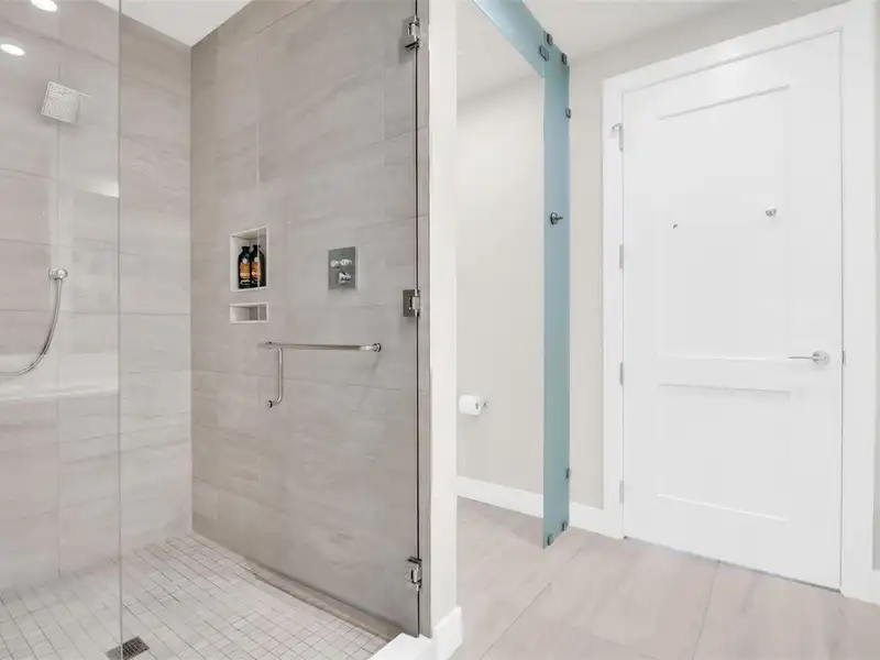 - 12-foot ceilings with porcelain tile